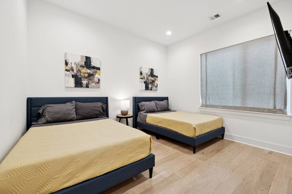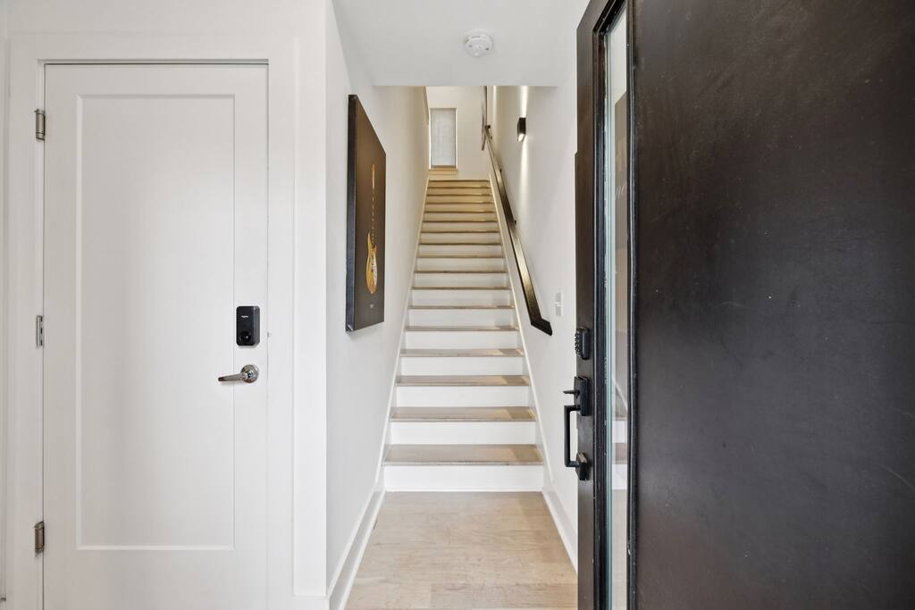 Welcome to The Arden by Elevay & Co. your Nashville home base — designed for groups who want space to spread out, a rooftop with city views, and quick access to everything downtown has to offer. This multi-level modern townhome sleeps up to 11 and is located just minutes from Broadway, downtown Nashville, concerts, restaurants, and nightlife. Whether you’re here for a weekend getaway, a friends’ trip, a family stay, or a special celebration, the layout makes it easy to be together without ever feeling crowded. Start your mornings slow with coffee and sunlight streaming through large windows while the city wakes up around you. Multiple living areas allow everyone to move at their own pace — early risers, late sleepers, and everyone in between. When it’s time to head out, you’re perfectly positioned. Broadway, live music venues, sporting events, and some of Nashville’s best dining are all a short drive away. You get the convenience of downtown proximity without the noise when you’re ready to unwind. The highlight of the home is the rooftop. This is where the group naturally gathers — music playing, drinks in hand, skyline views stretching out in front of you. Sunset turns into night, the city lights come on, and suddenly this becomes the moment everyone remembers from the trip. Inside, the design is simple, modern, and intentional. Comfortable beds, open gathering spaces, and a layout that works especially well for larger groups. Nothing overdone, just thoughtful spaces that feel easy to live in for a few days or a long weekend. This isn’t just a place to sleep between plans. It’s where your group reconnects, relaxes, and experiences Nashville together. If you’re looking for a Nashville Airbnb with rooftop city views, space for a group, and a prime location near downtown—this home delivers. 🛏️ Sleeping Arrangements (11 Beds): BR1 (Floor 1): 1 Queen Bed BR2 (Floor 2): 2 Double Beds, 2 Twins (bunks) BR3 (Floor 3): 2 Double Beds BR 4 (Floor 3): 2 Queen Beds, 2 Twins (Daybed) 🏙️ Location Highlights: 🛻 5 min to Broadway’s honky-tonks & nightlife 🍴 2 min to Germantown’s restaurants & shops 🏈 7 min to Titans Stadium & TopGolf 🛍️ 10 min to 12 South ✈️ 14 min to BNA Airport 🎶 18 min to Grand Ole Opry You’ll be in the perfect spot to explore — without the chaos of being in the middle of it all.