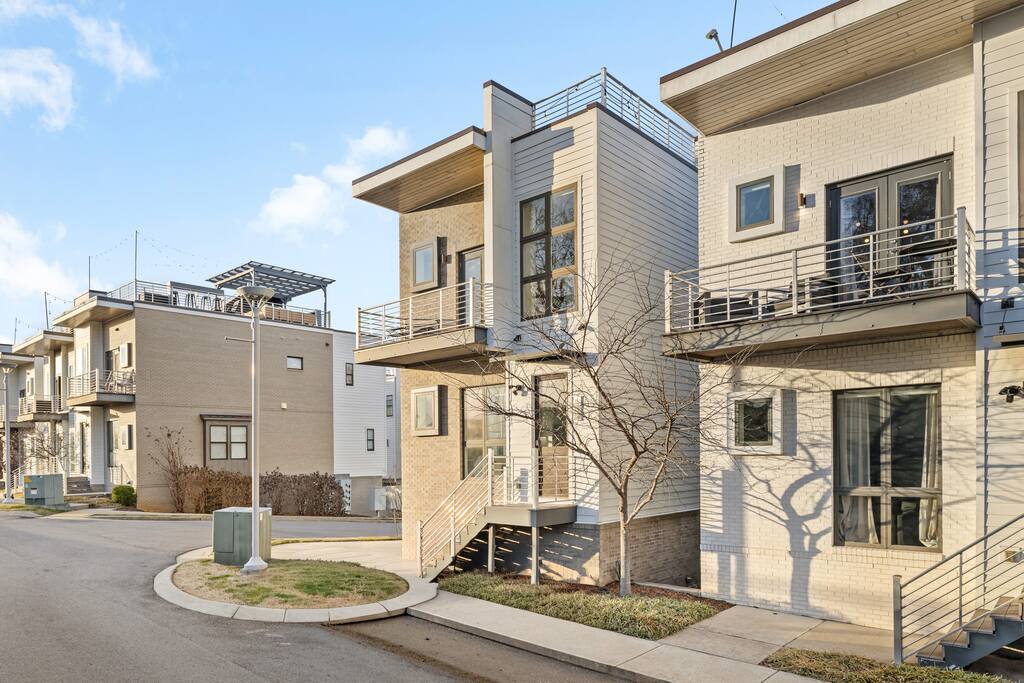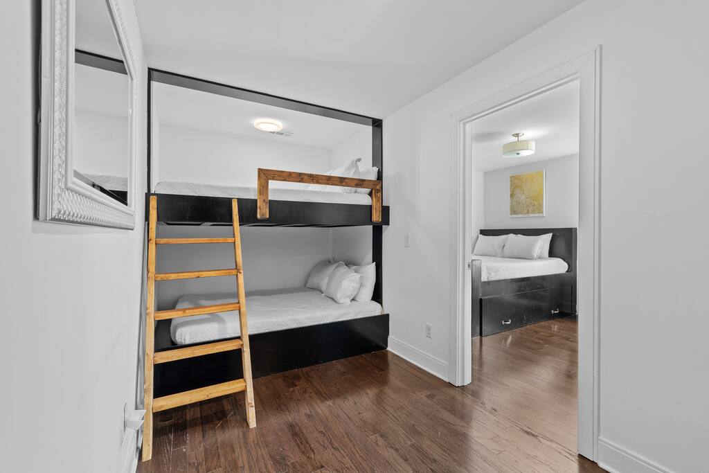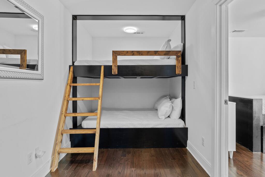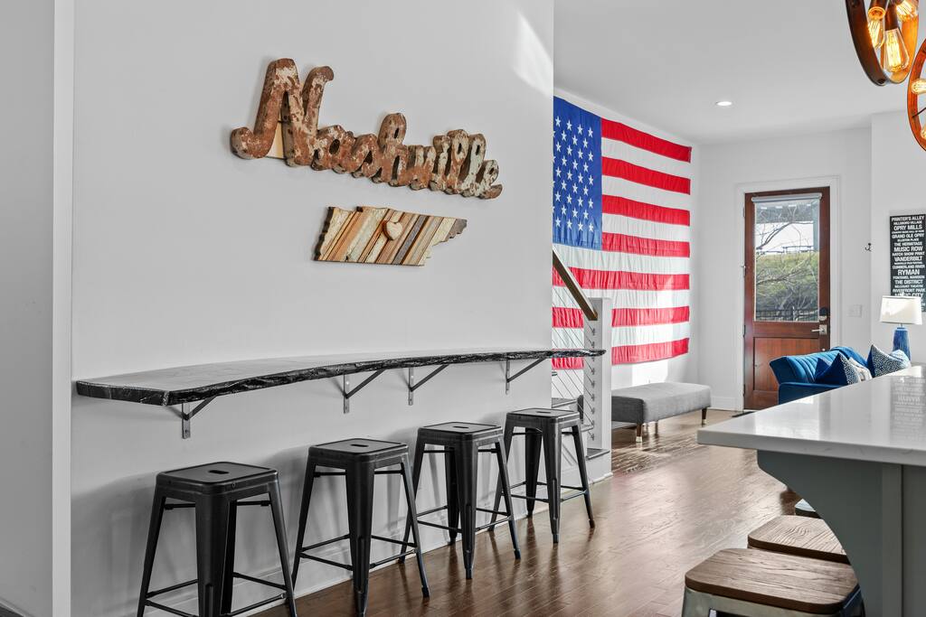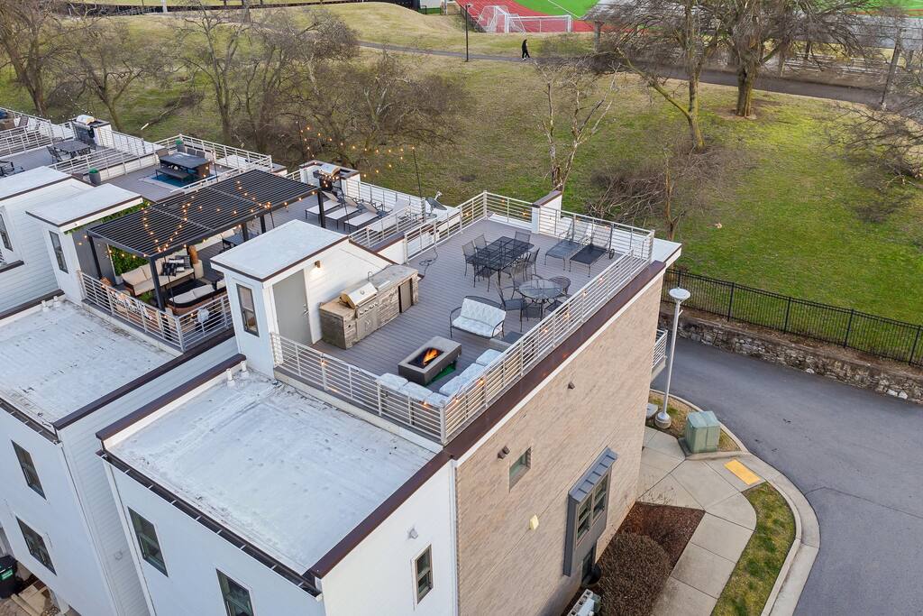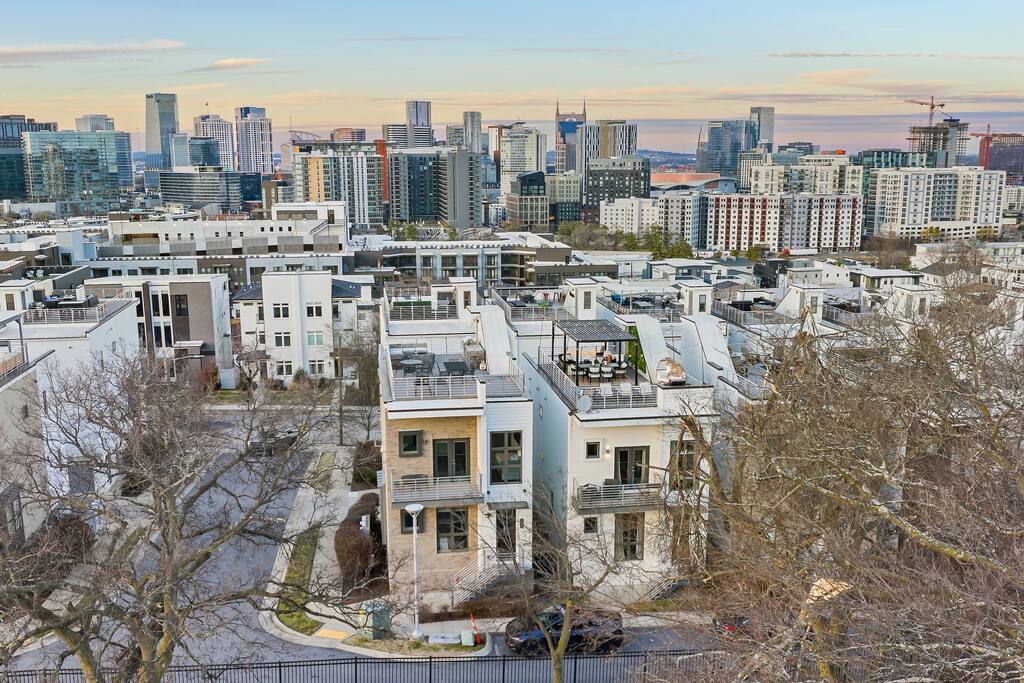 14 beds across an open, well-designed layout means no one’s drawing the short straw. Mornings start in the kitchen with real coffee. Nights end on the private rooftop with a fire pit and insane city views — drinks in hand, fire going, skyline lit up, and the kind of conversations that only happen when no one’s in a rush to leave. You’ll be ready to book again before the trip is even over. Every detail was thought through. The flow of the house. The rooftop setup. The essentials that make group trips smoother without calling attention to themselves. Whether you’re here with friends, family, or a milestone weekend crew, this is the place everyone ends up talking about long after the trip’s over. What You’ll Love 🌇 Rooftop lounge w/ fire pit, great views & golden hour sunsets. 👟 Located in the Gulch, walkable to coffee shops, restaurants, bars, and more. 🛏️ Sleeps 12 comfortably across 4 bedrooms + 14 beds total ☕ Fully Stocked Coffee Bar for your perfect morning coffee 🍽️ Chef’s kitchen w/ all your kitchen basics from a toaster to blenders. 🎶 Just minutes from Broadway, Downtown, 12 South, Music Row, and more! 🚗 Garage parking + free street parking ✅ Early check-in & late check-out when available 🛏️ Sleeping Arrangements (4BR, 4BA, 14 Beds) Level 1 (with the garage): Bedroom 1 - Queen bed + full trundle (1Q, 1F) Built in Full Bunks by the stairs (FQ) Level 2 (with the living room + kitchen): Bedroom 2 - 2x Queen/Twin Beds (QF, 2T) Level 3 (with laundry): Bedroom 3 - King Suite with a twin trundle (1K, 1T) Bedroom 4 - 2 Queens + Twin Daybed (2Q, 2T) Each bedroom has an ensuite bathroom. 4 full bathrooms so no one’s waiting in line! Mornings at The Atlas start at the coffee bar. Whether you're an early riser or recovering from a night on Broadway, you’ll find everything you need to fuel your day. Offering both options for either Drip or Keurig brewers, with creamers, syrups, and all the fixings. It's your own personal cafe. Fully loaded kitchen includes sleek stainless steel appliances, toaster, blender, all the cookware / utensils, and more. 🏙️ Location Highlights: 🛻 Walkable to the Gulch / Edgehill 🛍️ 5 min to 12 South 🍴 5 min to Broadway’s honky-tonks & nightlife 🏈 9 min to Titans Stadium & TopGolf ✈️ 14 min to BNA Airport 🎶 20 min to Grand Ole Opry You’ll be in the perfect spot to explore — without the chaos of being in the middle of it all. ☕ Walkable Neighborhood Gems Sunda (asian fusion) Osa Coffee Roasters (coffee shop) The Well Coffeehouse (coffee shop) LalaLand Coffee (coffee shop) Barcelona Wine Bar (restaurant) L.A. Jackson (rooftoop bar) Golden Sound (speakeasy vibe bar) Biscuit Love Gulch (breakfast) & SO MUCH MORE!! 🚗 Parking 2 spots in the attached garage & free street parking directly in front Well-lit & easy access. WE DO NOT RENT TO LOCALS; IF YOU ARE A LOCAL PLEASE INQUIRE BEFORE ATTEMPTING TO BOOK.