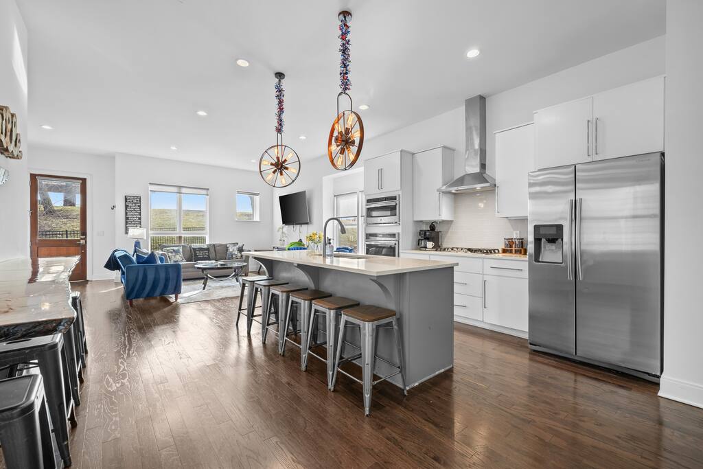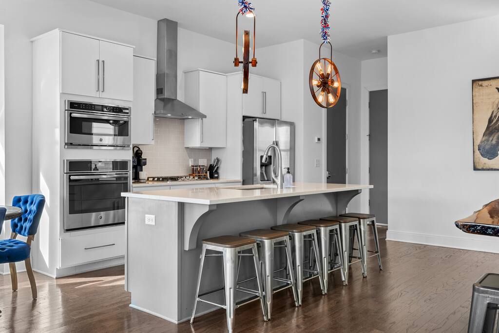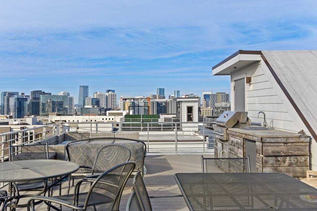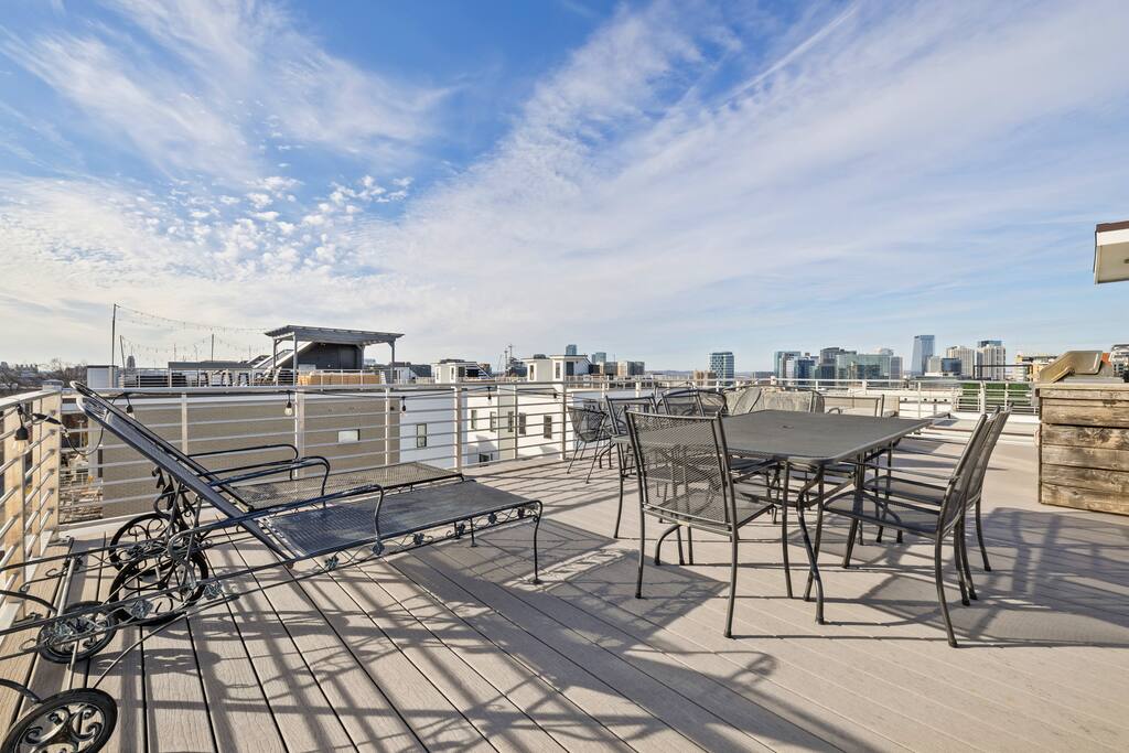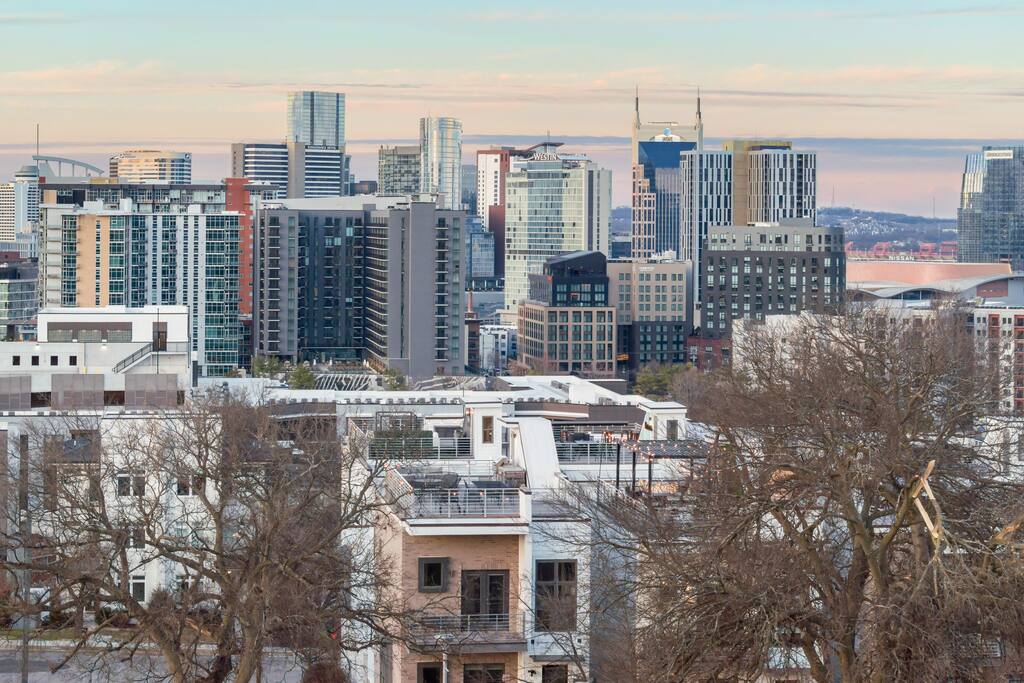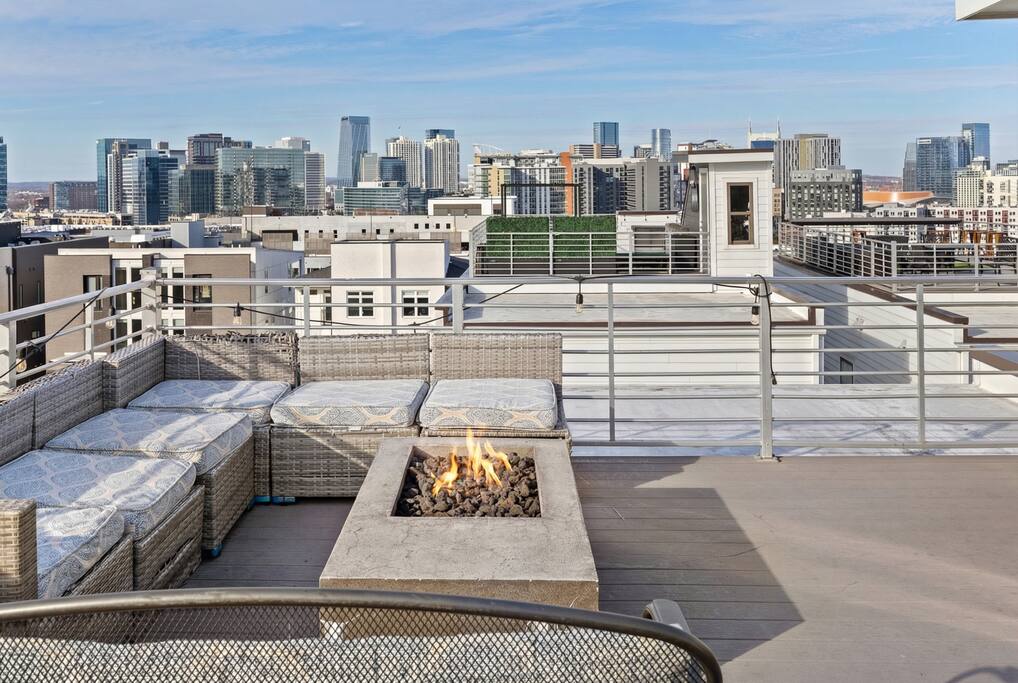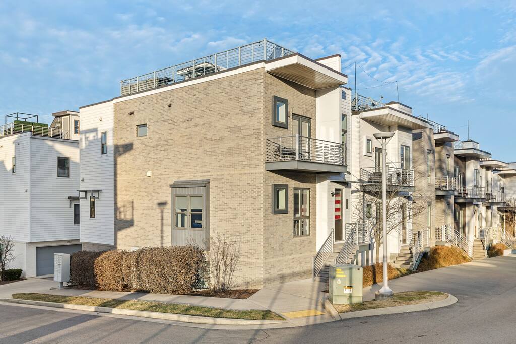 14 beds across an open, well-designed layout means no one’s drawing the short straw. Mornings start in the kitchen with real coffee. Nights end on the private rooftop with a fire pit and insane city views — drinks in hand, fire going, skyline lit up, and the kind of conversations that only happen when no one’s in a rush to leave. You’ll be ready to book again before the trip is even over. Every detail was thought through. The flow of the house. The rooftop setup. The essentials that make group trips smoother without calling attention to themselves. Whether you’re here with friends, family, or a milestone weekend crew, this is the place everyone ends up talking about long after the trip’s over. What You’ll Love 🌇 Rooftop lounge w/ fire pit, great views & golden hour sunsets. 👟 Located in the Gulch, walkable to coffee shops, restaurants, bars, and more. 🛏️ Sleeps 12 comfortably across 4 bedrooms + 14 beds total ☕ Fully Stocked Coffee Bar for your perfect morning coffee 🍽️ Chef’s kitchen w/ all your kitchen basics from a toaster to blenders. 🎶 Just minutes from Broadway, Downtown, 12 South, Music Row, and more! 🚗 Garage parking + free street parking ✅ Early check-in & late check-out when available 🛏️ Sleeping Arrangements (4BR, 4BA, 14 Beds) Level 1 (with the garage): Bedroom 1 - Queen bed + full trundle (1Q, 1F) Built in Full Bunks by the stairs (FQ) Level 2 (with the living room + kitchen): Bedroom 2 - 2x Queen/Twin Beds (QF, 2T) Level 3 (with laundry): Bedroom 3 - King Suite with a twin trundle (1K, 1T) Bedroom 4 - 2 Queens + Twin Daybed (2Q, 2T) Each bedroom has an ensuite bathroom. 4 full bathrooms so no one’s waiting in line! Mornings at The Atlas start at the coffee bar. Whether you're an early riser or recovering from a night on Broadway, you’ll find everything you need to fuel your day. Offering both options for either Drip or Keurig brewers, with creamers, syrups, and all the fixings. It's your own personal cafe. Fully loaded kitchen includes sleek stainless steel appliances, toaster, blender, all the cookware / utensils, and more. 🏙️ Location Highlights: 🛻 Walkable to the Gulch / Edgehill 🛍️ 5 min to 12 South 🍴 5 min to Broadway’s honky-tonks & nightlife 🏈 9 min to Titans Stadium & TopGolf ✈️ 14 min to BNA Airport 🎶 20 min to Grand Ole Opry You’ll be in the perfect spot to explore — without the chaos of being in the middle of it all. ☕ Walkable Neighborhood Gems Sunda (asian fusion) Osa Coffee Roasters (coffee shop) The Well Coffeehouse (coffee shop) LalaLand Coffee (coffee shop) Barcelona Wine Bar (restaurant) L.A. Jackson (rooftoop bar) Golden Sound (speakeasy vibe bar) Biscuit Love Gulch (breakfast) & SO MUCH MORE!! 🚗 Parking 2 spots in the attached garage & free street parking directly in front Well-lit & easy access. WE DO NOT RENT TO LOCALS; IF YOU ARE A LOCAL PLEASE INQUIRE BEFORE ATTEMPTING TO BOOK.
