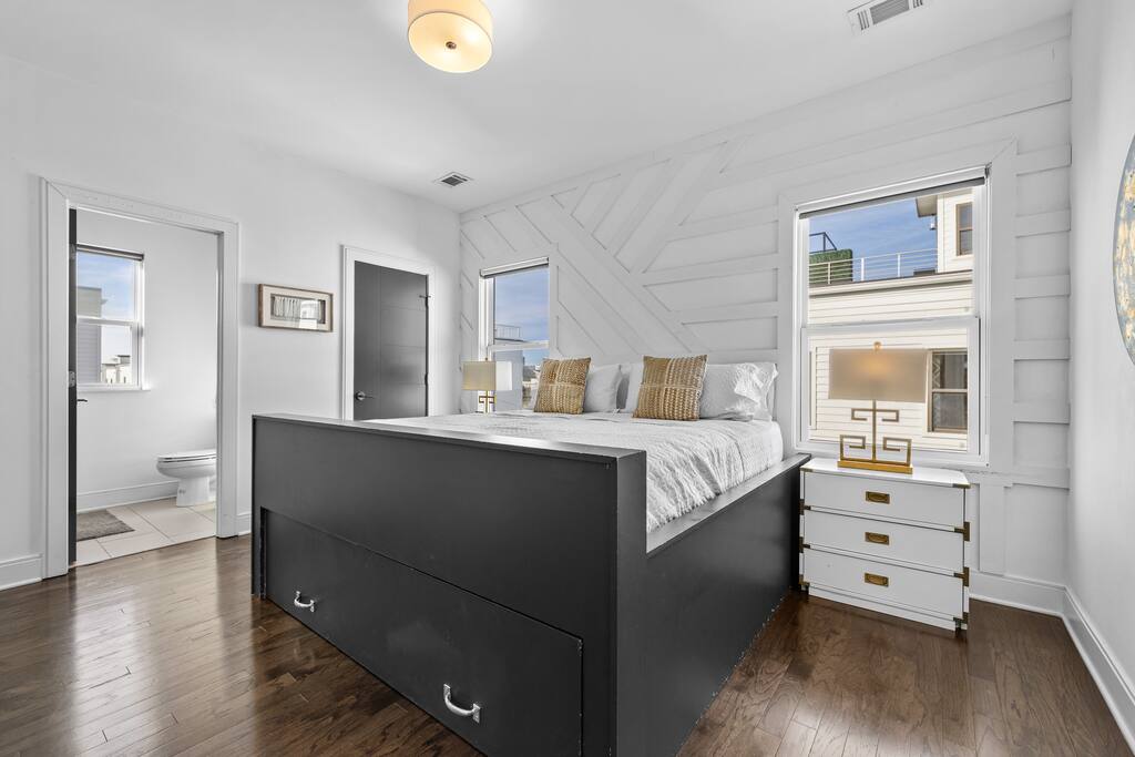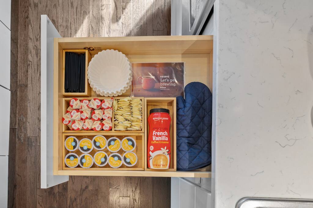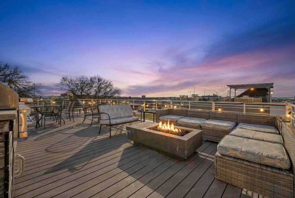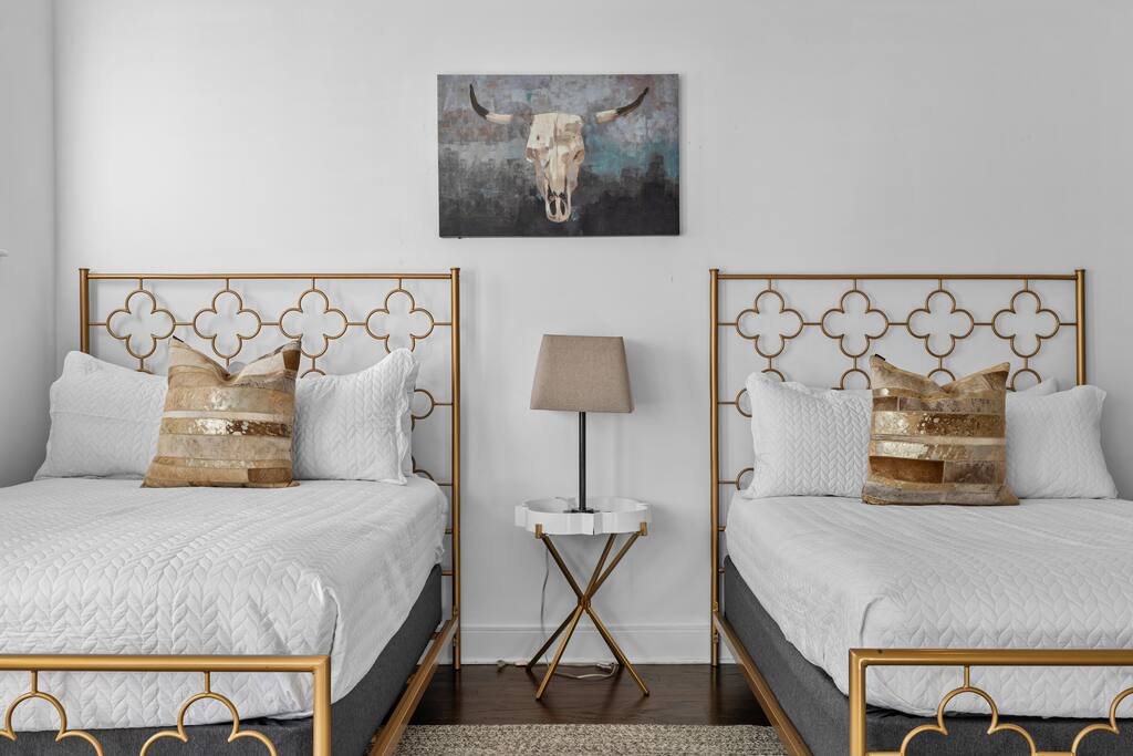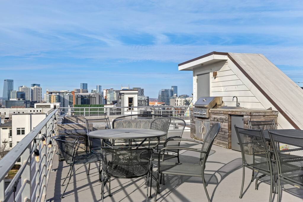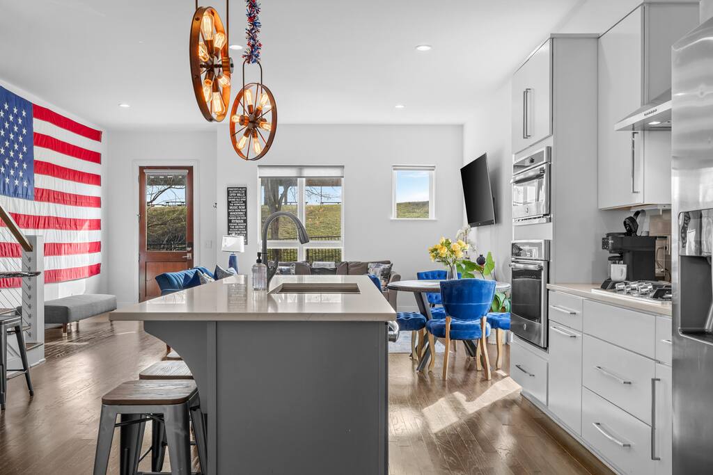 14 beds across an open, well-designed layout means no one’s drawing the short straw. Mornings start in the kitchen with real coffee. Nights end on the private rooftop with a fire pit and insane city views — drinks in hand, fire going, skyline lit up, and the kind of conversations that only happen when no one’s in a rush to leave. You’ll be ready to book again before the trip is even over. Every detail was thought through. The flow of the house. The rooftop setup. The essentials that make group trips smoother without calling attention to themselves. Whether you’re here with friends, family, or a milestone weekend crew, this is the place everyone ends up talking about long after the trip’s over. What You’ll Love 🌇 Rooftop lounge w/ fire pit, great views & golden hour sunsets. 👟 Located in the Gulch, walkable to coffee shops, restaurants, bars, and more. 🛏️ Sleeps 12 comfortably across 4 bedrooms + 14 beds total ☕ Fully Stocked Coffee Bar for your perfect morning coffee 🍽️ Chef’s kitchen w/ all your kitchen basics from a toaster to blenders. 🎶 Just minutes from Broadway, Downtown, 12 South, Music Row, and more! 🚗 Garage parking + free street parking ✅ Early check-in & late check-out when available 🛏️ Sleeping Arrangements (4BR, 4BA, 14 Beds) Level 1 (with the garage): Bedroom 1 - Queen bed + full trundle (1Q, 1F) Built in Full Bunks by the stairs (FQ) Level 2 (with the living room + kitchen): Bedroom 2 - 2x Queen/Twin Beds (QF, 2T) Level 3 (with laundry): Bedroom 3 - King Suite with a twin trundle (1K, 1T) Bedroom 4 - 2 Queens + Twin Daybed (2Q, 2T) Each bedroom has an ensuite bathroom. 4 full bathrooms so no one’s waiting in line! Mornings at The Atlas start at the coffee bar. Whether you're an early riser or recovering from a night on Broadway, you’ll find everything you need to fuel your day. Offering both options for either Drip or Keurig brewers, with creamers, syrups, and all the fixings. It's your own personal cafe. Fully loaded kitchen includes sleek stainless steel appliances, toaster, blender, all the cookware / utensils, and more. 🏙️ Location Highlights: 🛻 Walkable to the Gulch / Edgehill 🛍️ 5 min to 12 South 🍴 5 min to Broadway’s honky-tonks & nightlife 🏈 9 min to Titans Stadium & TopGolf ✈️ 14 min to BNA Airport 🎶 20 min to Grand Ole Opry You’ll be in the perfect spot to explore — without the chaos of being in the middle of it all. ☕ Walkable Neighborhood Gems Sunda (asian fusion) Osa Coffee Roasters (coffee shop) The Well Coffeehouse (coffee shop) LalaLand Coffee (coffee shop) Barcelona Wine Bar (restaurant) L.A. Jackson (rooftoop bar) Golden Sound (speakeasy vibe bar) Biscuit Love Gulch (breakfast) & SO MUCH MORE!! 🚗 Parking 2 spots in the attached garage & free street parking directly in front Well-lit & easy access. WE DO NOT RENT TO LOCALS; IF YOU ARE A LOCAL PLEASE INQUIRE BEFORE ATTEMPTING TO BOOK.