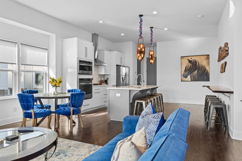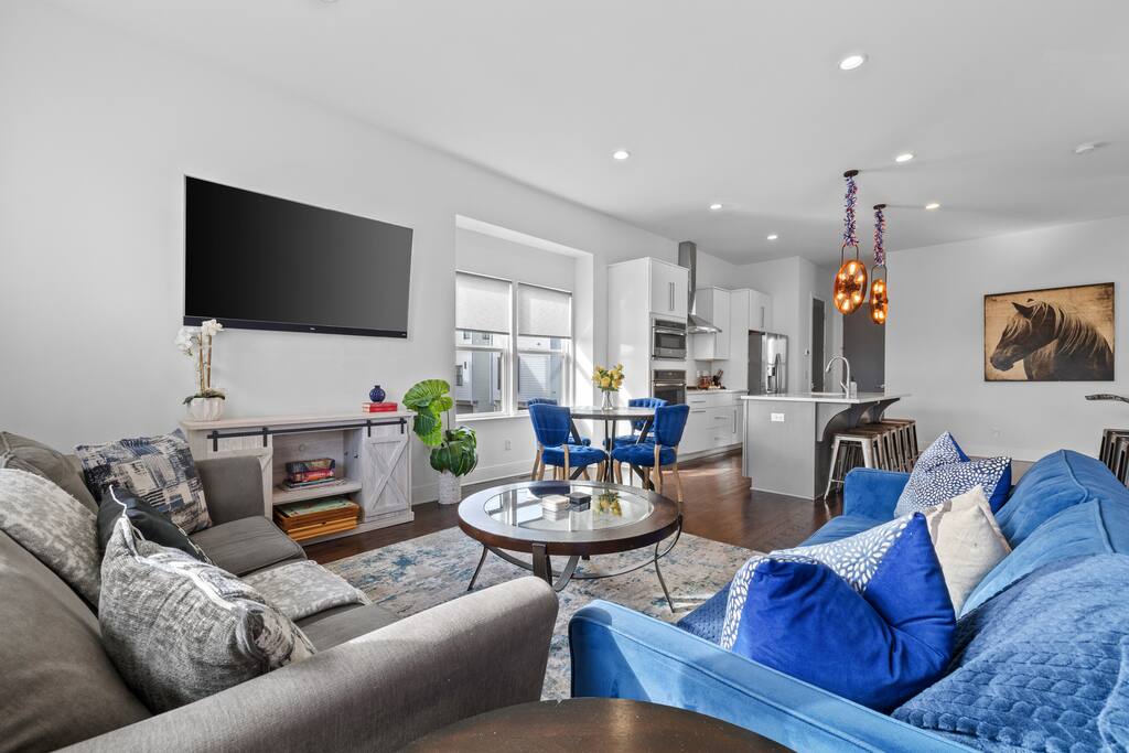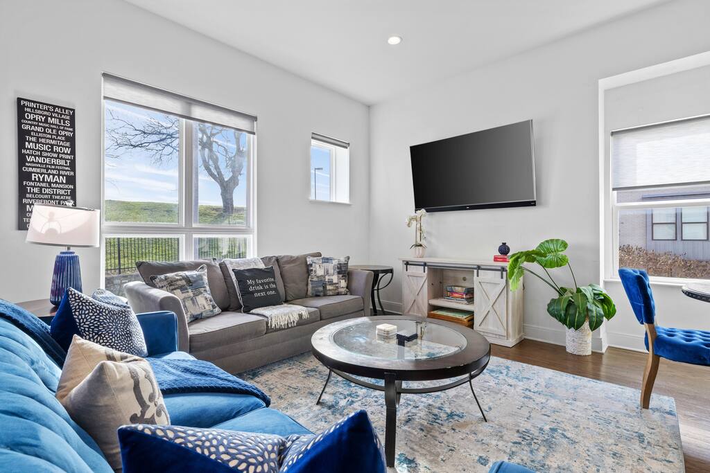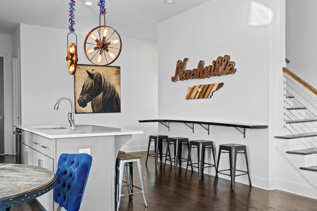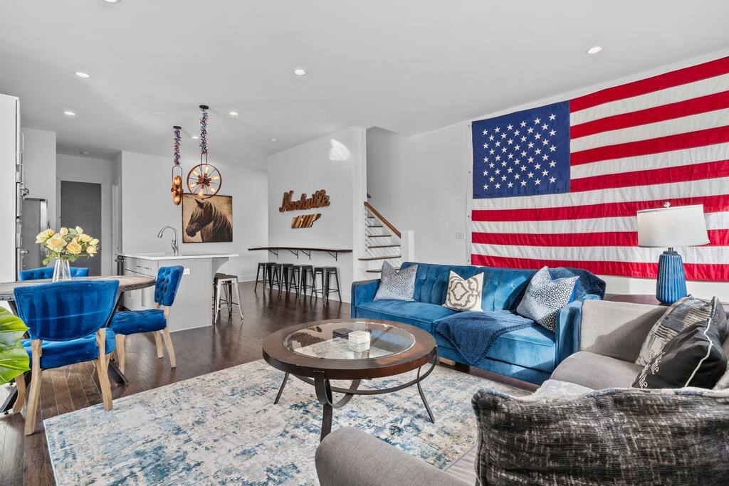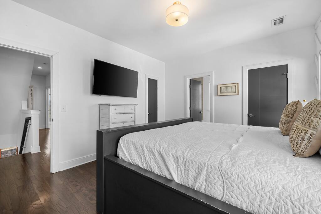 This is where your Nashville trip begins! Welcome to The Atlas by Elevay & Co. Less than minutes to Broadway, walkable to the Gulch, and built for groups that want space to move, gather, and do the weekend right. This home isn’t just large — it’s clean-lined, modern, and laid out so everyone can hang together without stepping on each other. We’ve got plenty of beds, quick walkability to where you want to go like Broadway & the Gulch. It’s also a super quick scooter ride away as well!