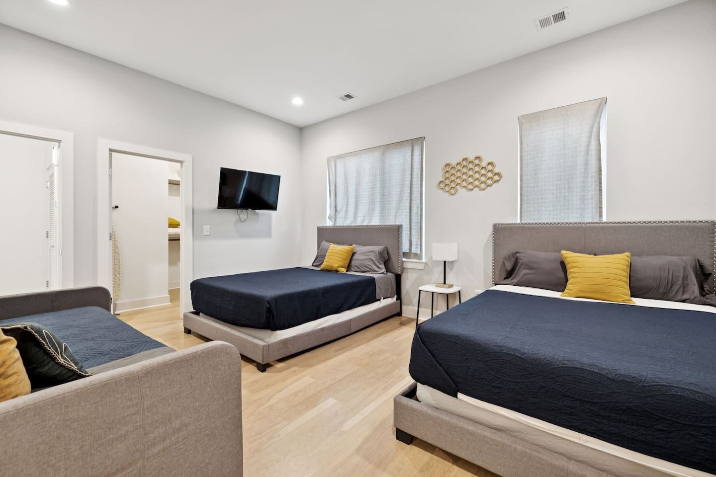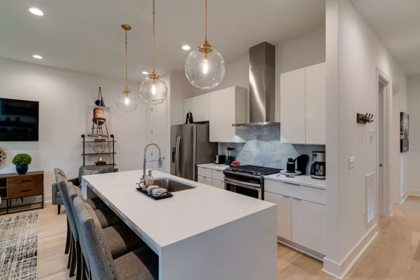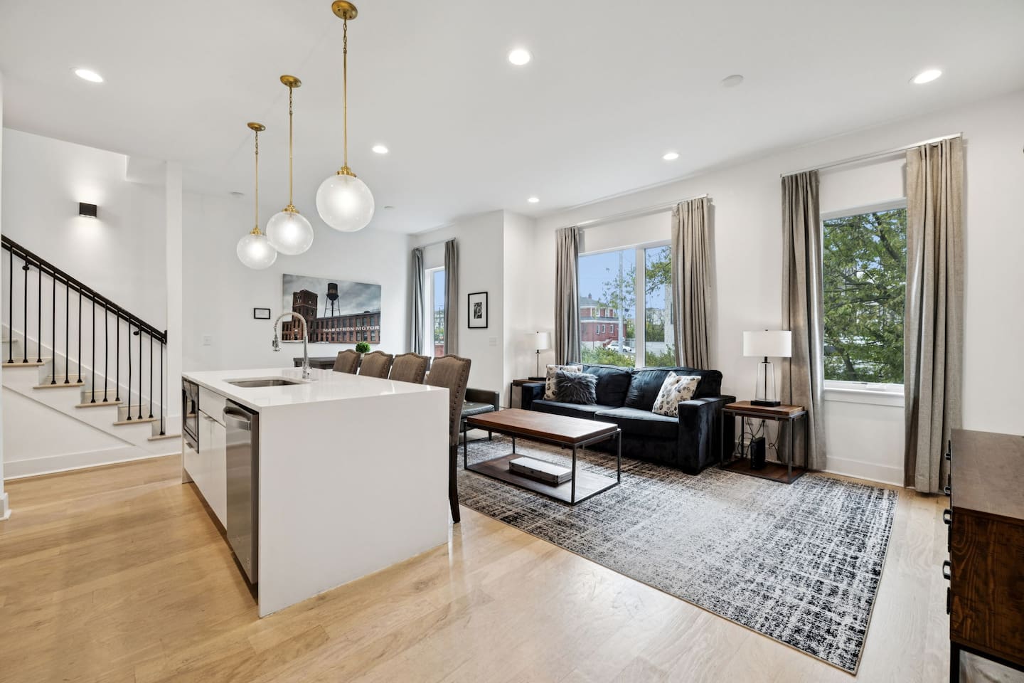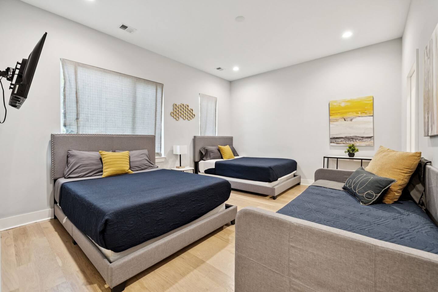 Welcome to The Arden by Elevay & Co. your Nashville home base — designed for groups who want space to spread out, a rooftop with city views, and quick access to everything downtown has to offer. This multi-level modern townhome sleeps up to 11 and is located just minutes from Broadway, downtown Nashville, concerts, restaurants, and nightlife. Whether you’re here for a weekend getaway, a friends’ trip, a family stay, or a special celebration, the layout makes it easy to be together without ever feeling crowded. Start your mornings slow with coffee and sunlight streaming through large windows while the city wakes up around you. Multiple living areas allow everyone to move at their own pace — early risers, late sleepers, and everyone in between. When it’s time to head out, you’re perfectly positioned. Broadway, live music venues, sporting events, and some of Nashville’s best dining are all a short drive away. You get the convenience of downtown proximity without the noise when you’re ready to unwind. The highlight of the home is the rooftop. This is where the group naturally gathers — music playing, drinks in hand, skyline views stretching out in front of you. Sunset turns into night, the city lights come on, and suddenly this becomes the moment everyone remembers from the trip. Inside, the design is simple, modern, and intentional. Comfortable beds, open gathering spaces, and a layout that works especially well for larger groups. Nothing overdone, just thoughtful spaces that feel easy to live in for a few days or a long weekend. This isn’t just a place to sleep between plans. It’s where your group reconnects, relaxes, and experiences Nashville together. If you’re looking for a Nashville Airbnb with rooftop city views, space for a group, and a prime location near downtown—this home delivers. 🛏️ Sleeping Arrangements (11 Beds): BR1 (Floor 1): 1 Queen Bed BR2 (Floor 2): 2 Double Beds, 2 Twins (bunks) BR3 (Floor 3): 2 Double Beds BR 4 (Floor 3): 2 Queen Beds, 2 Twins (Daybed) 🏙️ Location Highlights: 🛻 5 min to Broadway’s honky-tonks & nightlife 🍴 2 min to Germantown’s restaurants & shops 🏈 7 min to Titans Stadium & TopGolf 🛍️ 10 min to 12 South ✈️ 14 min to BNA Airport 🎶 18 min to Grand Ole Opry You’ll be in the perfect spot to explore — without the chaos of being in the middle of it all.