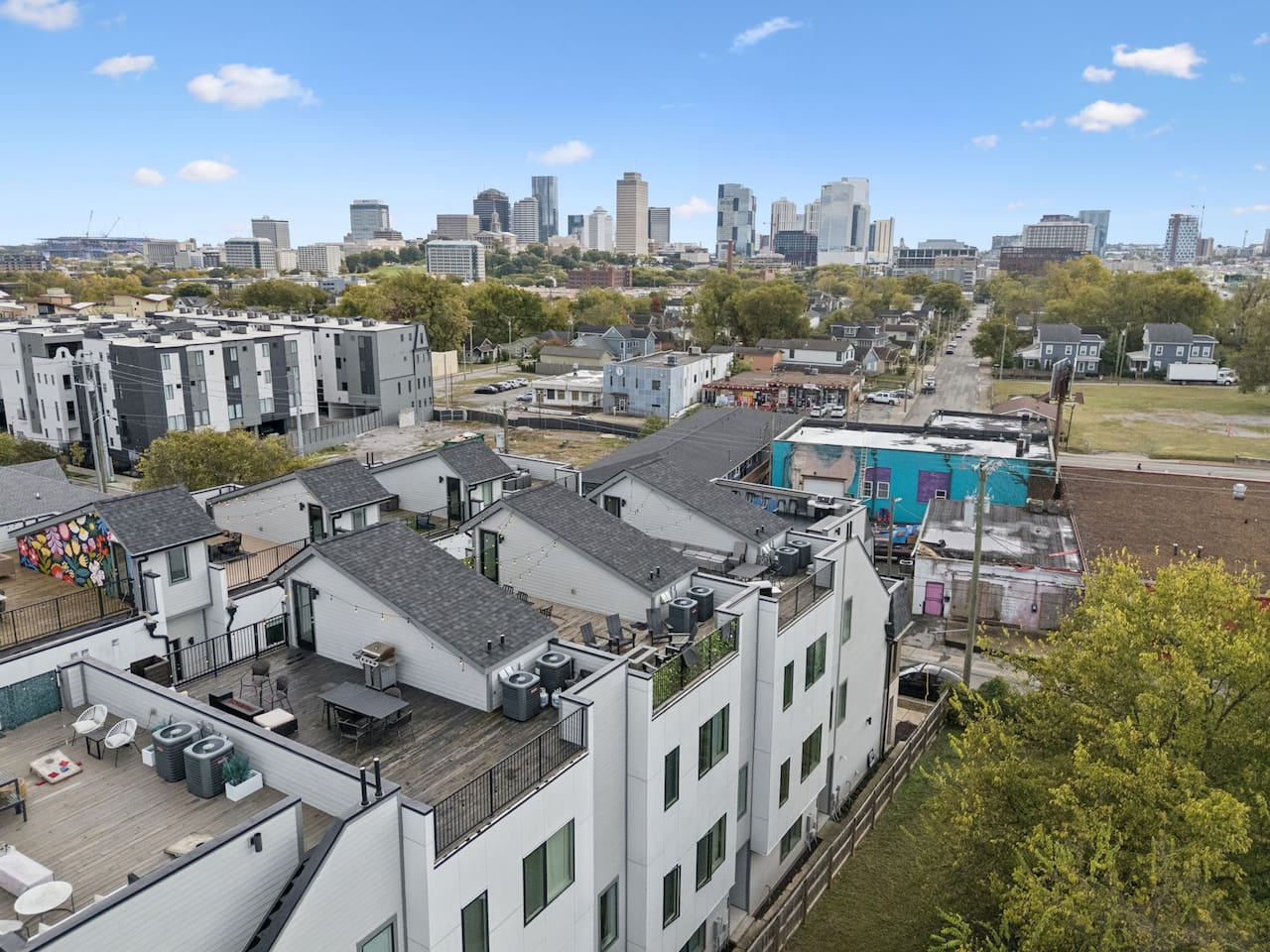 Rooftop city views, room for everyone, and Nashville just minutes away. This modern townhome with 11 beds and gives your group the space, location, and skyline moments that turn a good trip into a great one. Located in a central Nashville neighborhood with fast access to Broadway, downtown, Germantown, East Nashville, and major highways.