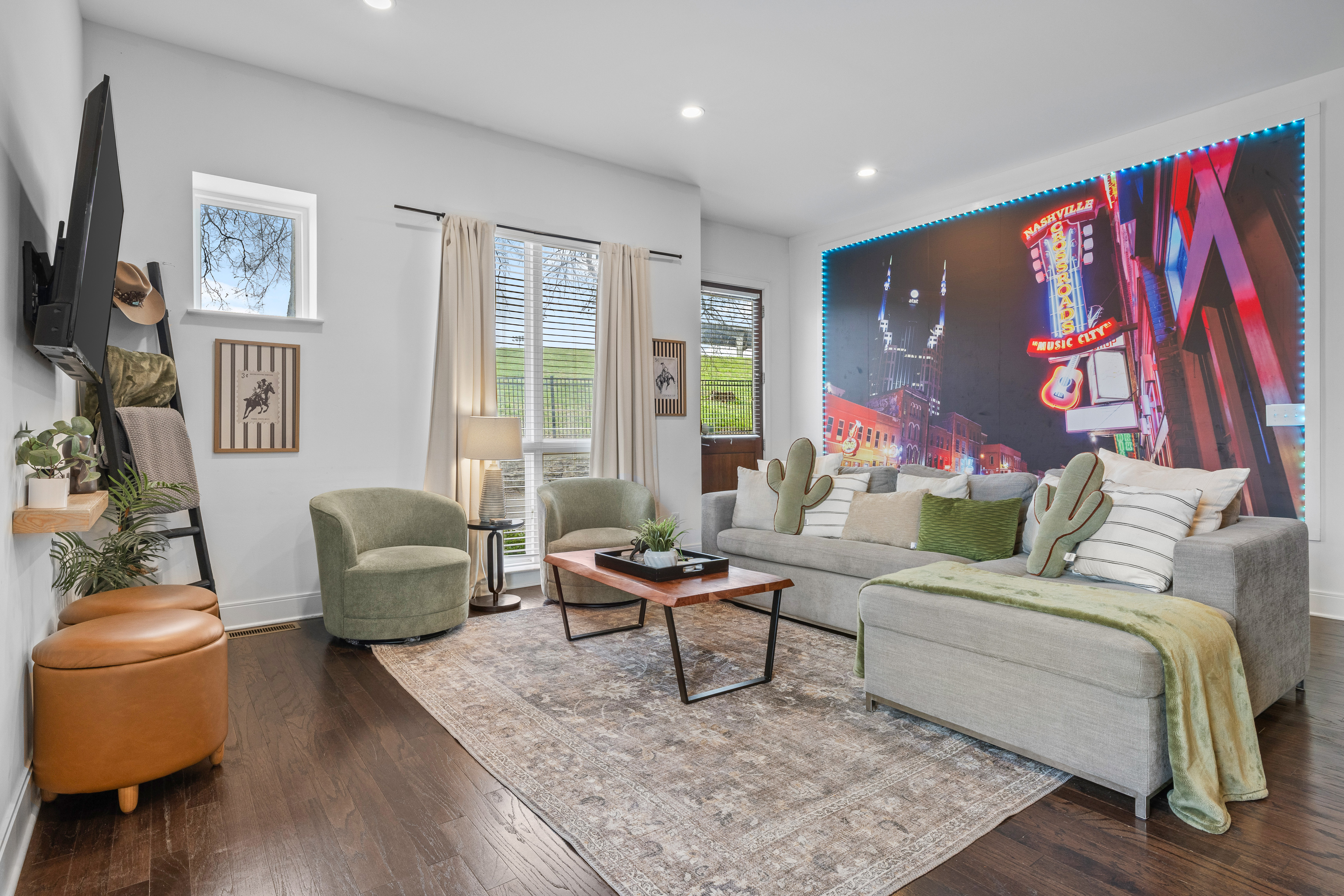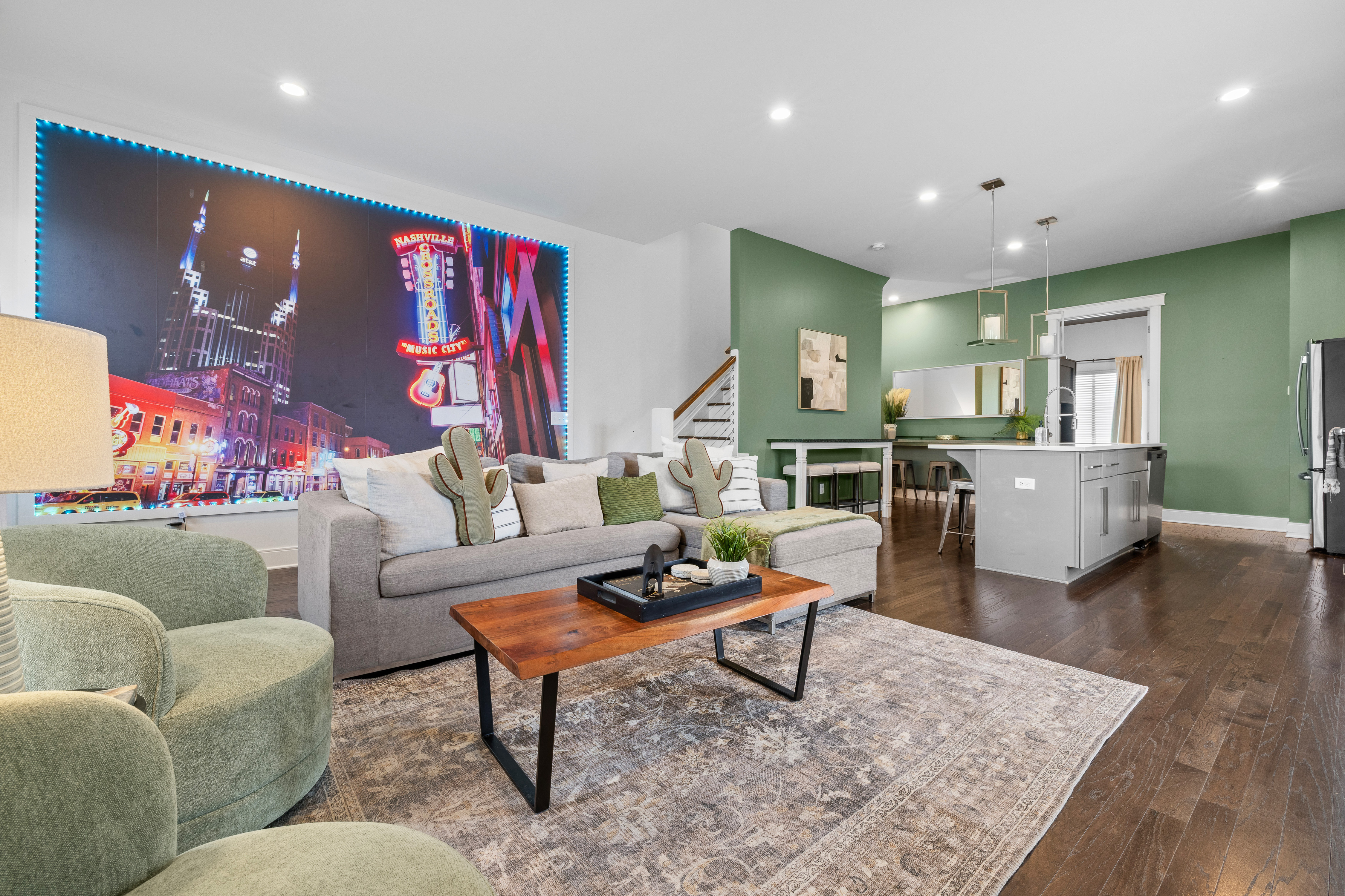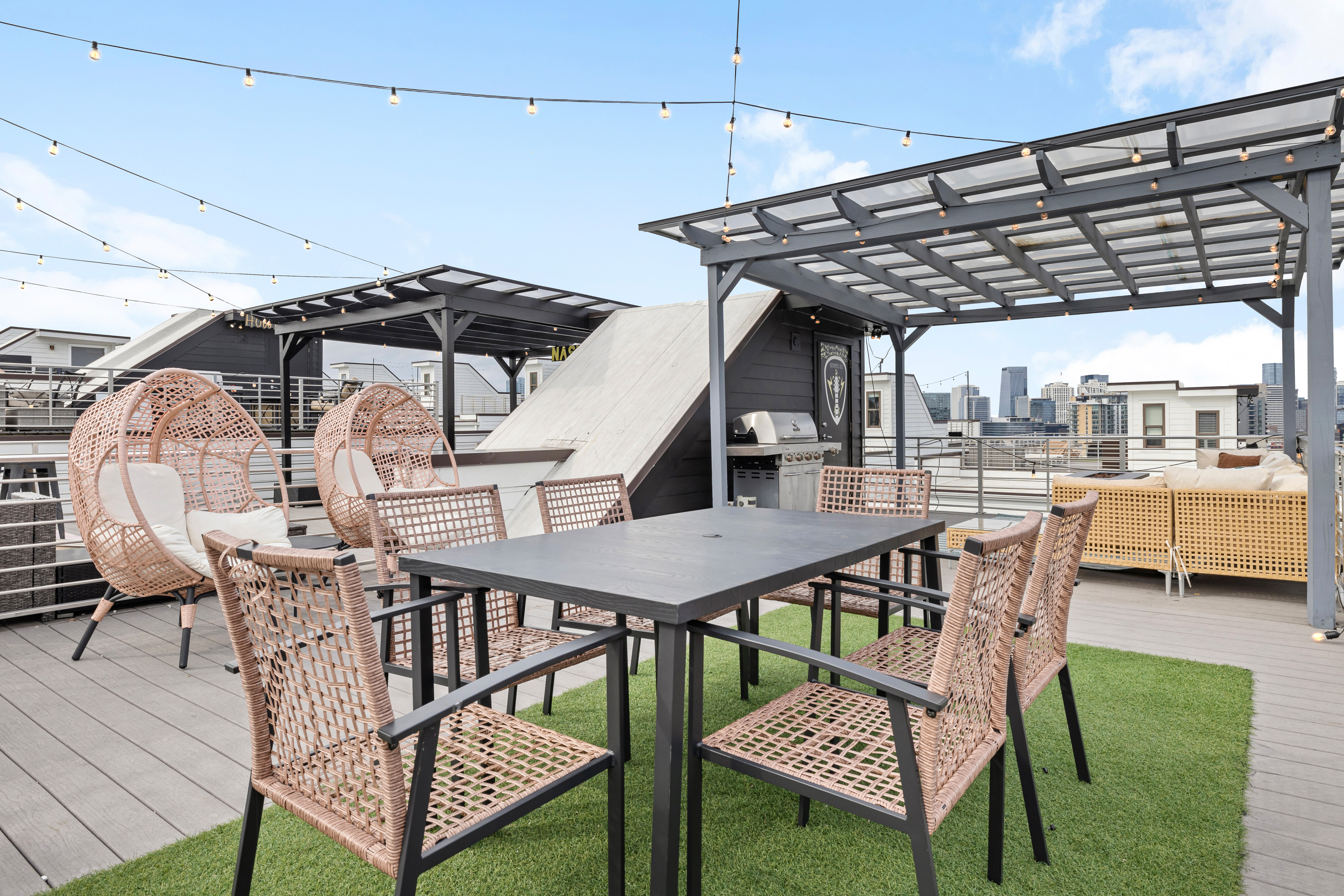 Designed specifically for group travel, The Wren blends modern comfort with the energy of Nashville. Sip coffee with skyline views, gather on the rooftop before a night out, and return home to a layout that gives everyone space without losing the feeling of being together. From the fully stocked kitchen to thoughtful details most homes overlook, everything here was created to make your trip feel effortless, elevated, and unforgettable. ✨ What You’ll Love ♨️ Rooftop barrel sauna (available after 04/16/2026) 🌇 Rooftop lounge w/ fire pit, west facing views & golden hour sunsets. 👟 Located in the Gulch, walkable to coffee shops, restaurants, bars, and more. 🛏️ Sleeps 12 comfortably across 4 bedrooms + 14 beds total ☕ Fully Stocked Coffee Bar for your perfect morning coffee 🍽️ Chef’s kitchen w/ all your kitchen basics from a toaster to blenders. 🎶 Just minutes from Broadway, Downtown, 12 South, Music Row, and more! 🚗 Garage parking + free street parking ✅ Early check-in & late check-out when available 🛏️ Sleeping Arrangements (4BR, 4BA, 14 Beds) Level 1 (with the garage): Bedroom 1 - Queen bed + full trundle (1Q, 1F) Built in Full Bunks by the stairs (FQ) Level 2 (with the living room + kitchen): Bedroom 2 - 2x Queen/Twin Beds (QF, 2T) Level 3 (with laundry): Bedroom 3 - King Suite with a twin trundle (1K, 1T) Bedroom 4 - 2 Queens + Twin Daybed (2Q, 2T) Each bedroom has an ensuite bathroom. 4 full bathrooms so no one’s waiting in line! Mornings at The Wren start at the coffee bar. Whether you're an early riser or recovering from a night on Broadway, you’ll find everything you need to fuel your day. Offering both options for either Drip or Keurig brewers, with creamers, syrups, and all the fixings. It's your own personal cafe. Fully loaded kitchen includes sleek stainless steel appliances, toaster, blender, all the cookware / utensils, and more. 🏙️ Location Highlights: 🛻 Walkable to the Gulch / Edgehill 🛍️ 5 min to 12 South 🍴 5 min to Broadway’s honky-tonks & nightlife 🏈 9 min to Titans Stadium & TopGolf ✈️ 14 min to BNA Airport 🎶 20 min to Grand Ole Opry You’ll be in the perfect spot to explore — without the chaos of being in the middle of it all. ☕ Walkable Neighborhood Gems Sunda (asian fusion) Osa Coffee Roasters (coffee shop) The Well Coffeehouse (coffee shop) LalaLand Coffee (coffee shop) Barcelona Wine Bar (restaurant) L.A. Jackson (rooftoop bar) Golden Sound (speakeasy vibe bar) Biscuit Love Gulch (breakfast) & SO MUCH MORE!! 🚗 Parking 2 spots in the attached garage & free street parking directly in front Well-lit & easy access. PLEASE NOTE THE BARREL SAUNA IS NEW AND WILL BE AVAILABLE FOR GUESTS AFTER APRIL 16TH, 2026. IF YOU BOOK AND STAY PRIOR TO THAT YOU WILL NOT HAVE THE ABILITY TO USE THE SAUNA. WE DO NOT RENT TO LOCALS; IF YOU ARE A LOCAL PLEASE INQUIRE BEFORE ATTEMPTING TO BOOK.