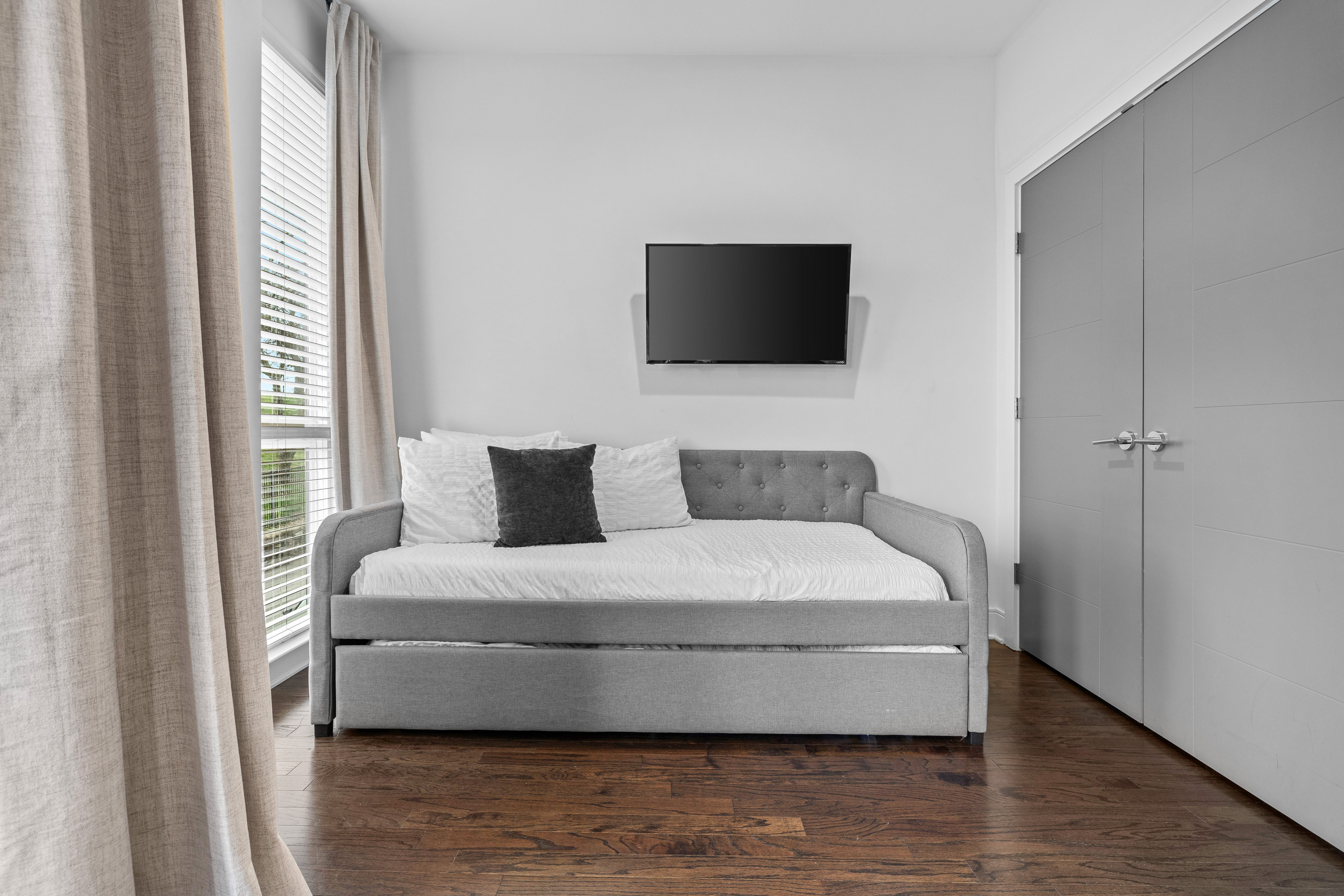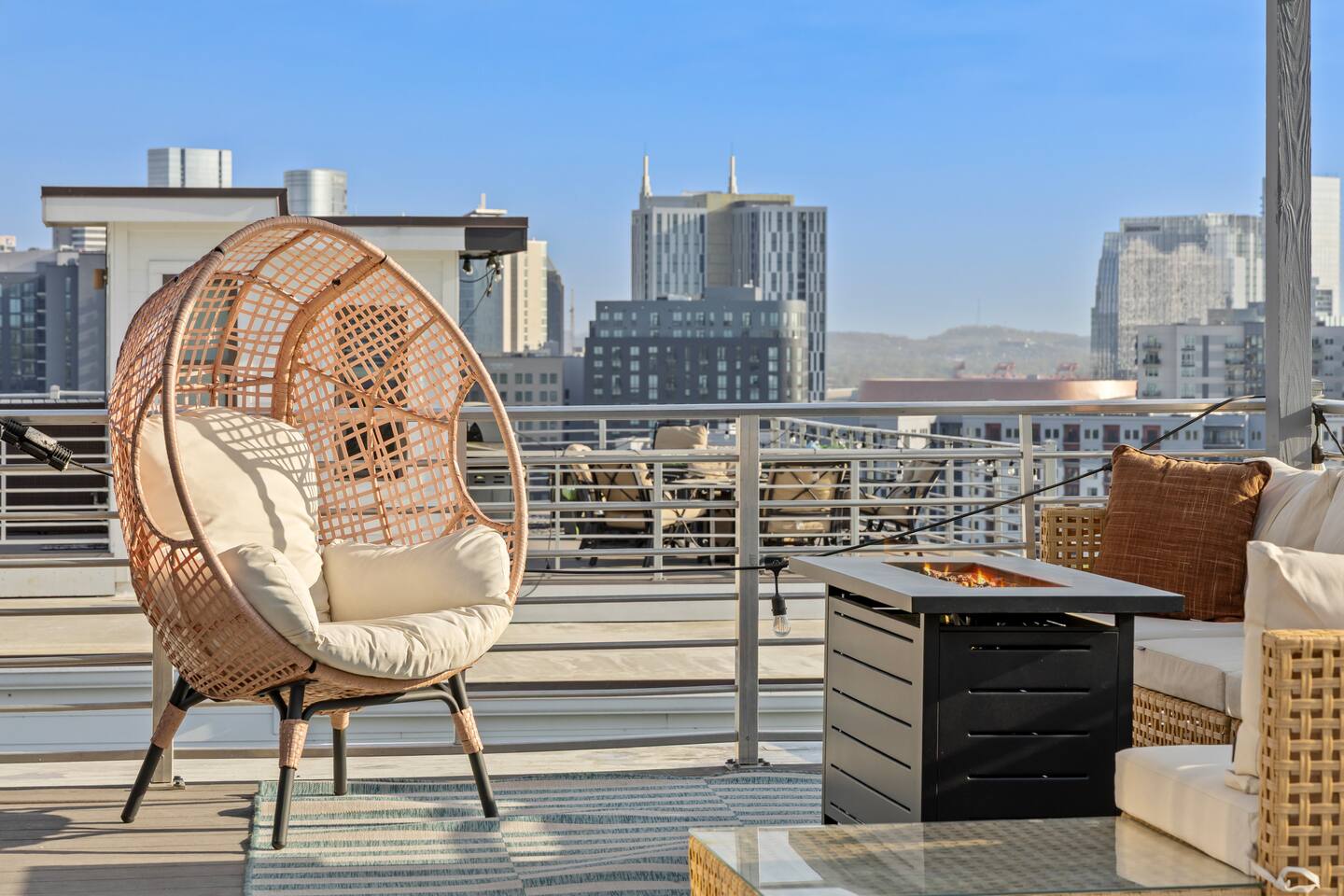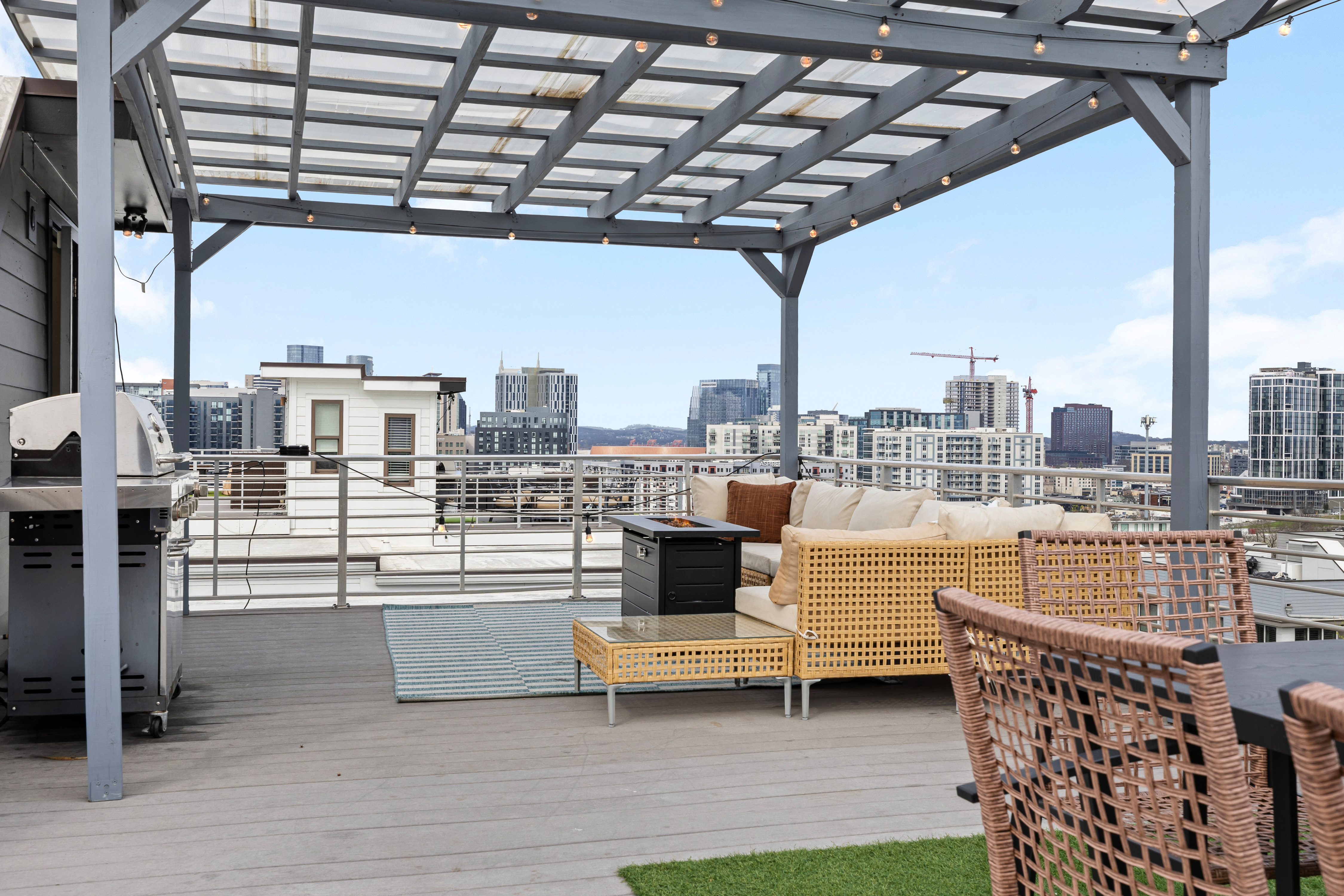 Designed specifically for group travel, The Wren blends modern comfort with the energy of Nashville. Sip coffee with skyline views, gather on the rooftop before a night out, and return home to a layout that gives everyone space without losing the feeling of being together. From the fully stocked kitchen to thoughtful details most homes overlook, everything here was created to make your trip feel effortless, elevated, and unforgettable. ✨ What You’ll Love ♨️ Rooftop barrel sauna (available after 04/16/2026) 🌇 Rooftop lounge w/ fire pit, west facing views & golden hour sunsets. 👟 Located in the Gulch, walkable to coffee shops, restaurants, bars, and more. 🛏️ Sleeps 12 comfortably across 4 bedrooms + 14 beds total ☕ Fully Stocked Coffee Bar for your perfect morning coffee 🍽️ Chef’s kitchen w/ all your kitchen basics from a toaster to blenders. 🎶 Just minutes from Broadway, Downtown, 12 South, Music Row, and more! 🚗 Garage parking + free street parking ✅ Early check-in & late check-out when available 🛏️ Sleeping Arrangements (4BR, 4BA, 14 Beds) Level 1 (with the garage): Bedroom 1 - Queen bed + full trundle (1Q, 1F) Built in Full Bunks by the stairs (FQ) Level 2 (with the living room + kitchen): Bedroom 2 - 2x Queen/Twin Beds (QF, 2T) Level 3 (with laundry): Bedroom 3 - King Suite with a twin trundle (1K, 1T) Bedroom 4 - 2 Queens + Twin Daybed (2Q, 2T) Each bedroom has an ensuite bathroom. 4 full bathrooms so no one’s waiting in line! Mornings at The Wren start at the coffee bar. Whether you're an early riser or recovering from a night on Broadway, you’ll find everything you need to fuel your day. Offering both options for either Drip or Keurig brewers, with creamers, syrups, and all the fixings. It's your own personal cafe. Fully loaded kitchen includes sleek stainless steel appliances, toaster, blender, all the cookware / utensils, and more. 🏙️ Location Highlights: 🛻 Walkable to the Gulch / Edgehill 🛍️ 5 min to 12 South 🍴 5 min to Broadway’s honky-tonks & nightlife 🏈 9 min to Titans Stadium & TopGolf ✈️ 14 min to BNA Airport 🎶 20 min to Grand Ole Opry You’ll be in the perfect spot to explore — without the chaos of being in the middle of it all. ☕ Walkable Neighborhood Gems Sunda (asian fusion) Osa Coffee Roasters (coffee shop) The Well Coffeehouse (coffee shop) LalaLand Coffee (coffee shop) Barcelona Wine Bar (restaurant) L.A. Jackson (rooftoop bar) Golden Sound (speakeasy vibe bar) Biscuit Love Gulch (breakfast) & SO MUCH MORE!! 🚗 Parking 2 spots in the attached garage & free street parking directly in front Well-lit & easy access. PLEASE NOTE THE BARREL SAUNA IS NEW AND WILL BE AVAILABLE FOR GUESTS AFTER APRIL 16TH, 2026. IF YOU BOOK AND STAY PRIOR TO THAT YOU WILL NOT HAVE THE ABILITY TO USE THE SAUNA. WE DO NOT RENT TO LOCALS; IF YOU ARE A LOCAL PLEASE INQUIRE BEFORE ATTEMPTING TO BOOK.