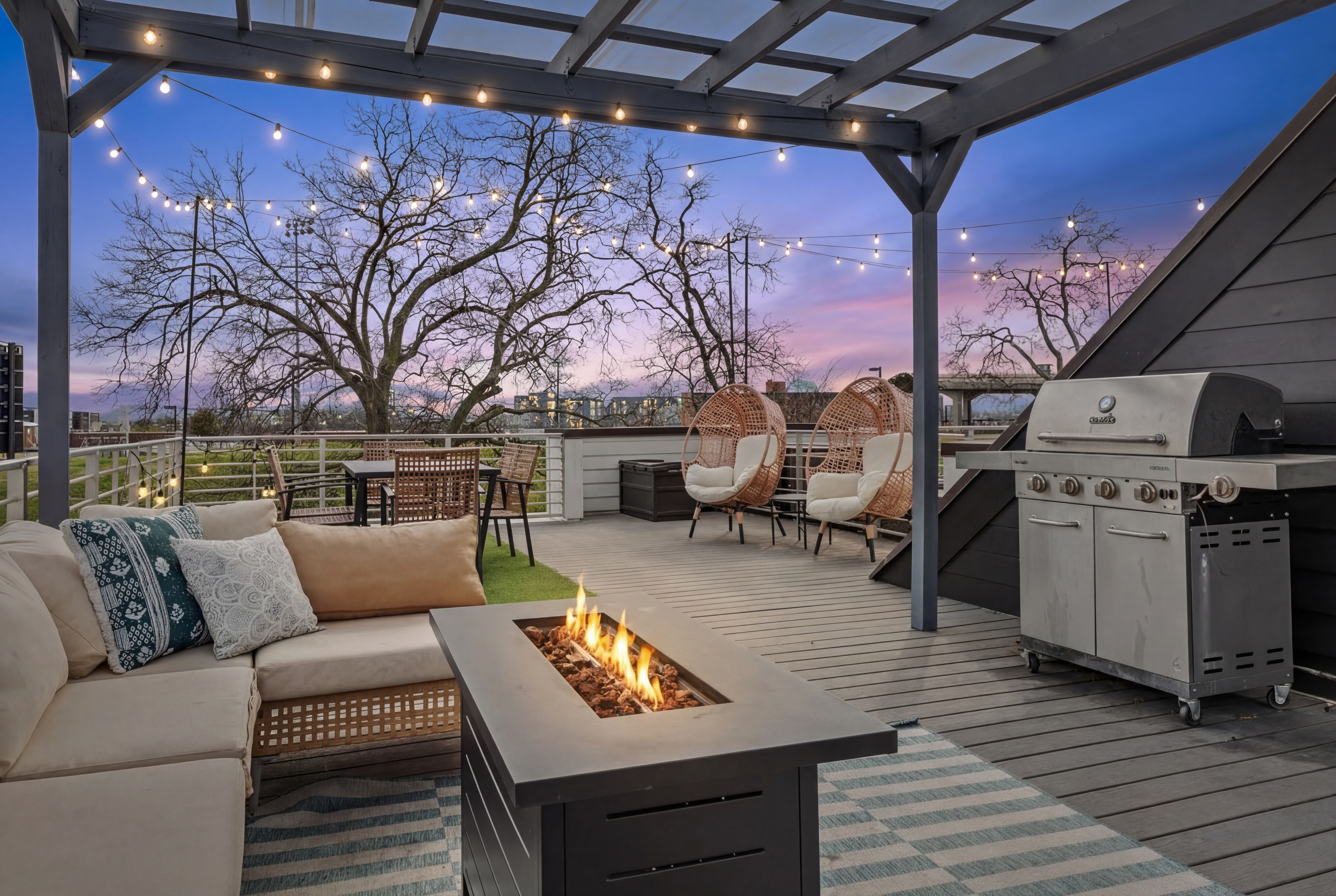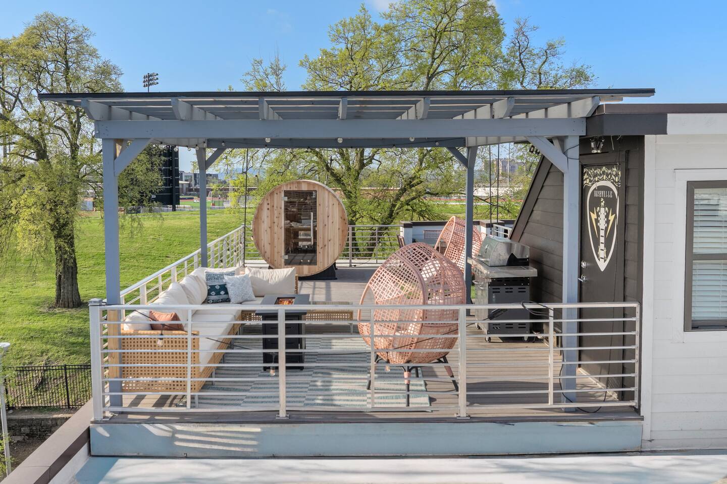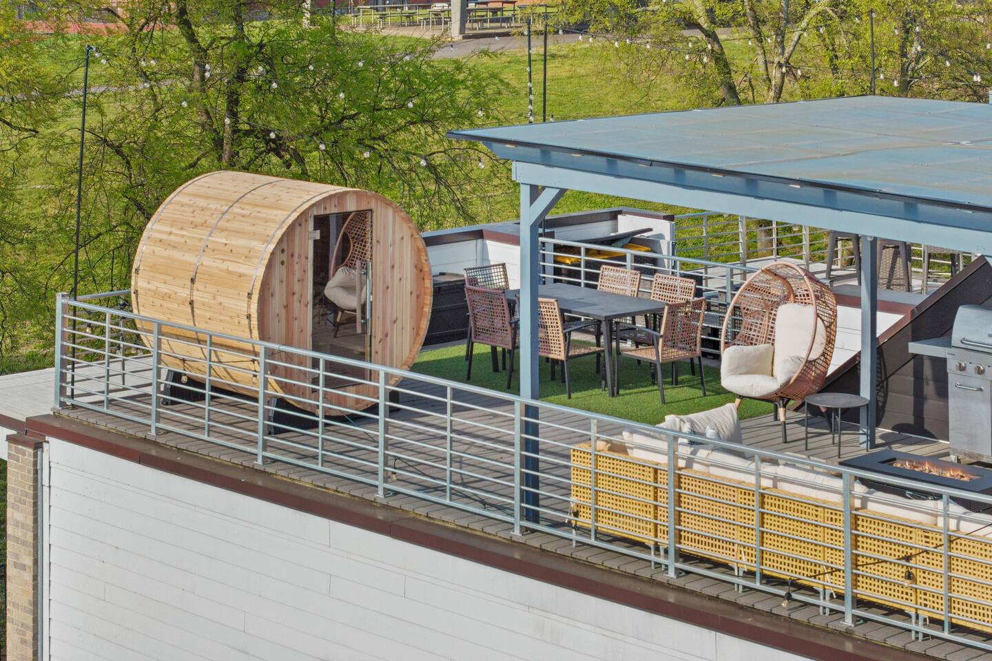 Start your Nashville trip above the city… unwinding in a private barrel sauna as the skyline glows around you. The Wren by Elevay & Co. sits in the heart of the Gulch, walkable to Nashville’s best restaurants, coffee, and nightlife, and just 5 minutes to Broadway. With a private rooftop built for sunset hangs, 14 beds for large groups, and intentional spaces designed for connection, this is the kind of stay your group will talk about long after the trip ends.