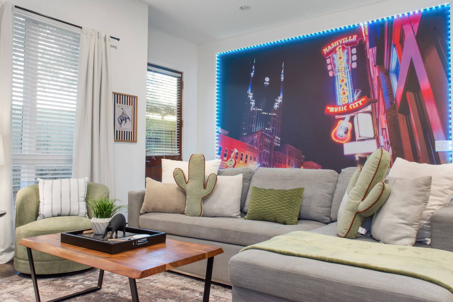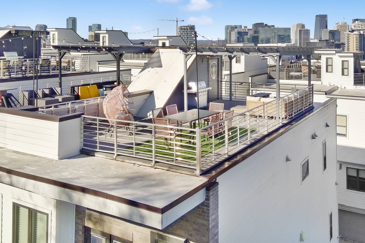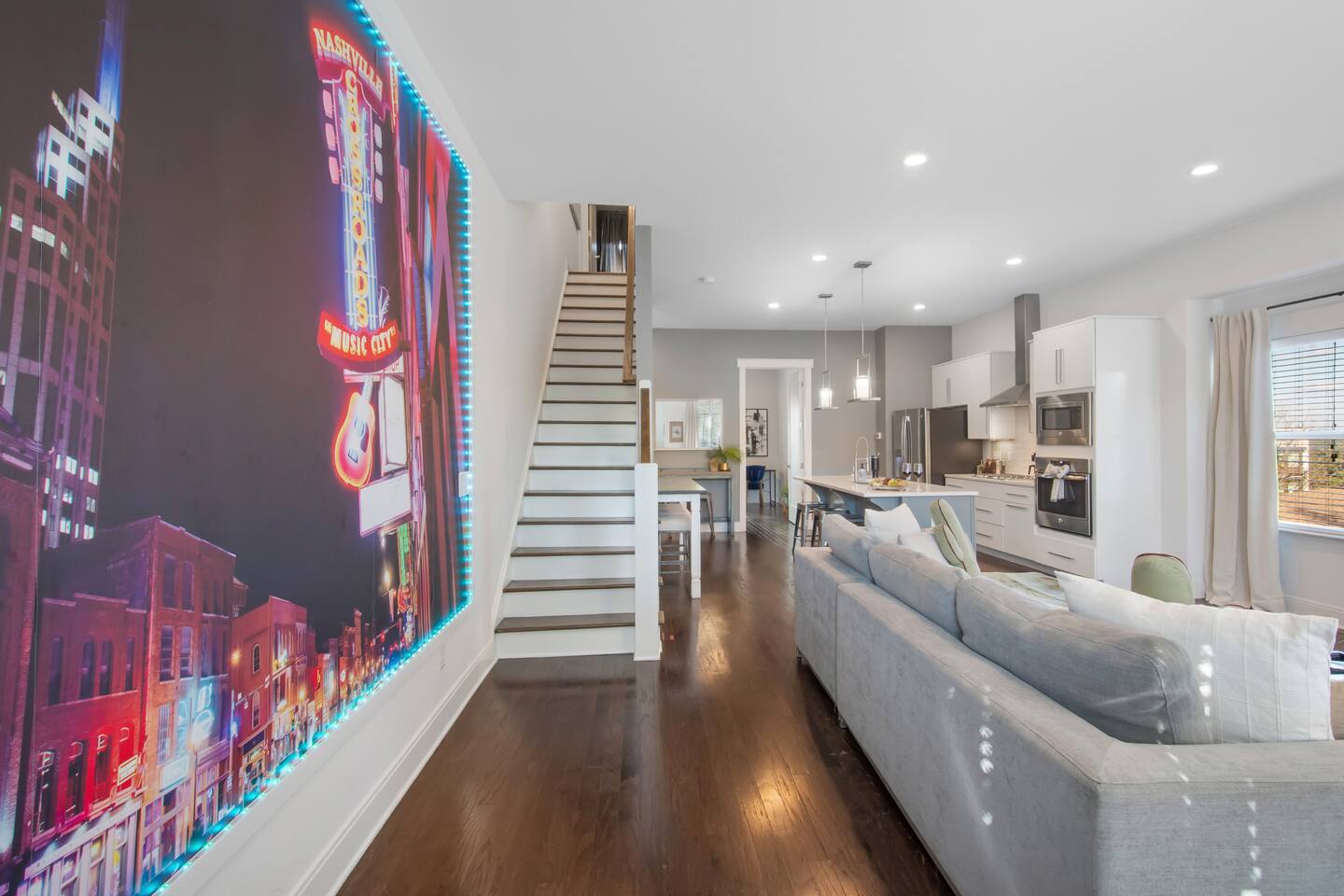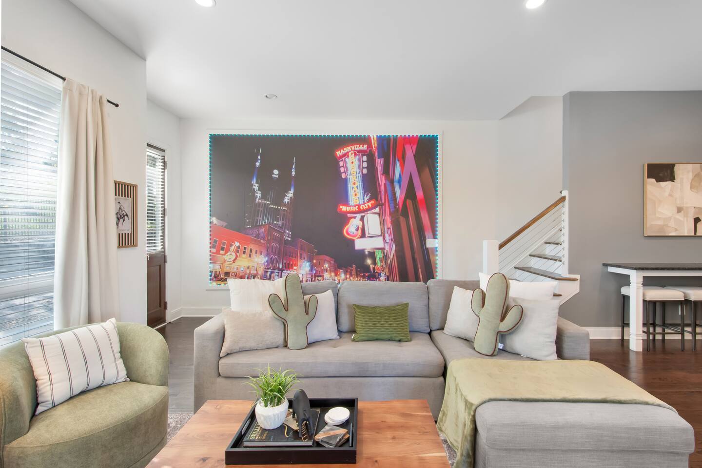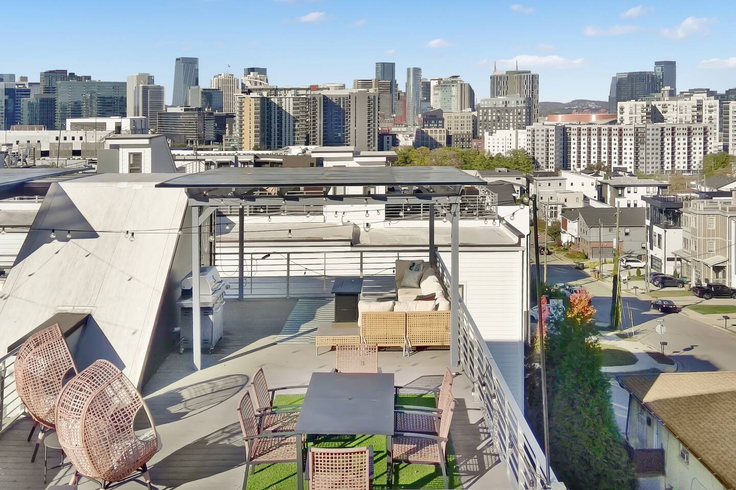 Your Nashville getaway starts here. Just 5 minutes to Broadway and walkable to the Gulch, The Wren offers 14 beds, a private rooftop, and a modern, spacious layout stocked with everything you would need — perfect for large groups, families, friends, and bachelor/bachelorette groups looking for comfort, connection, and killer skyline views.