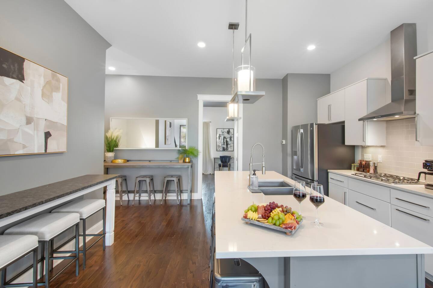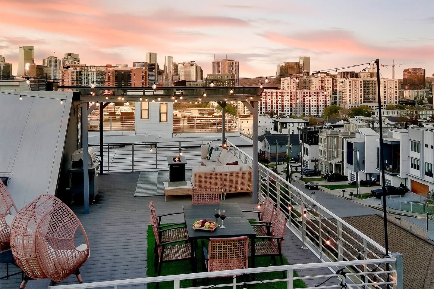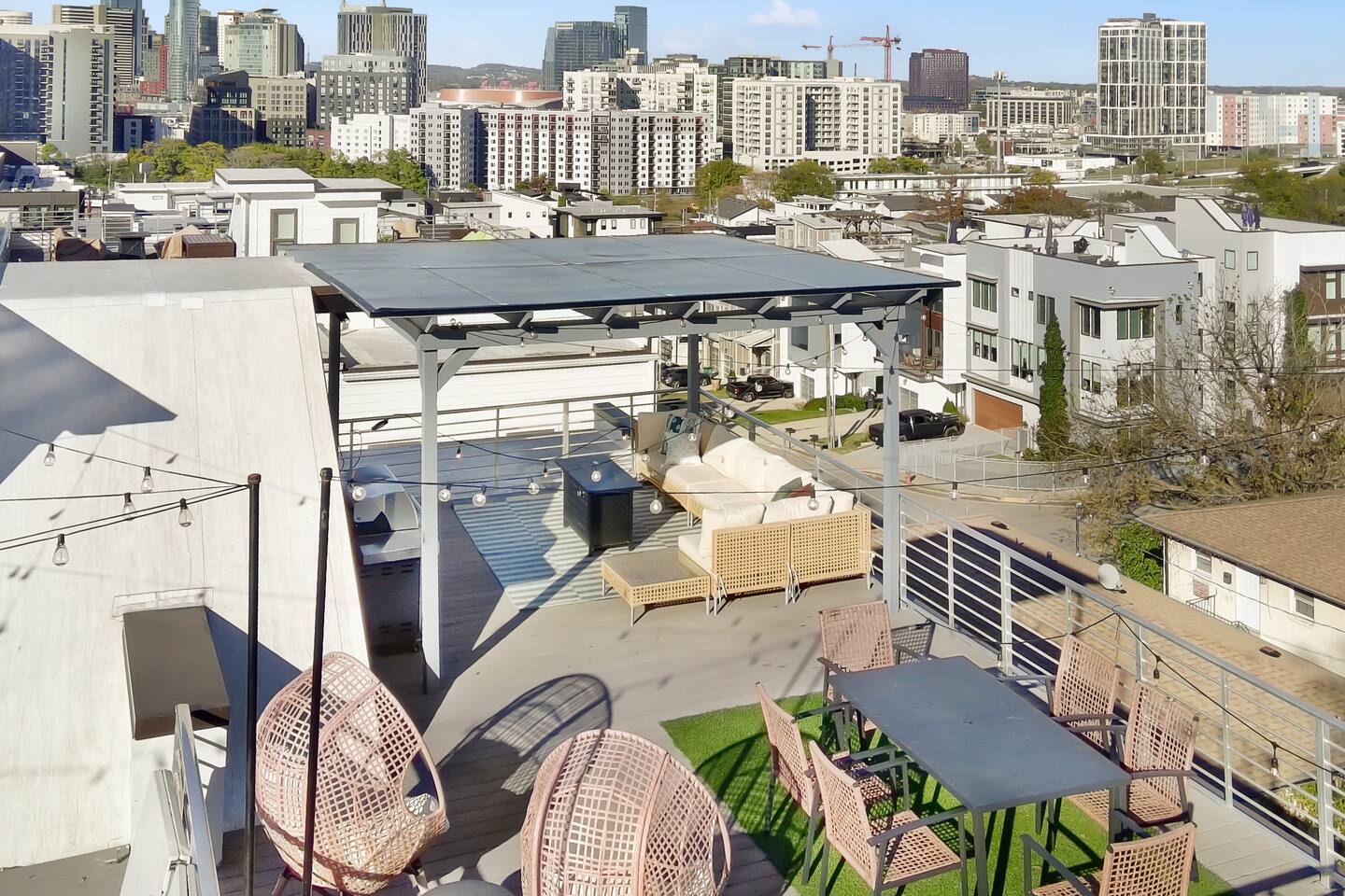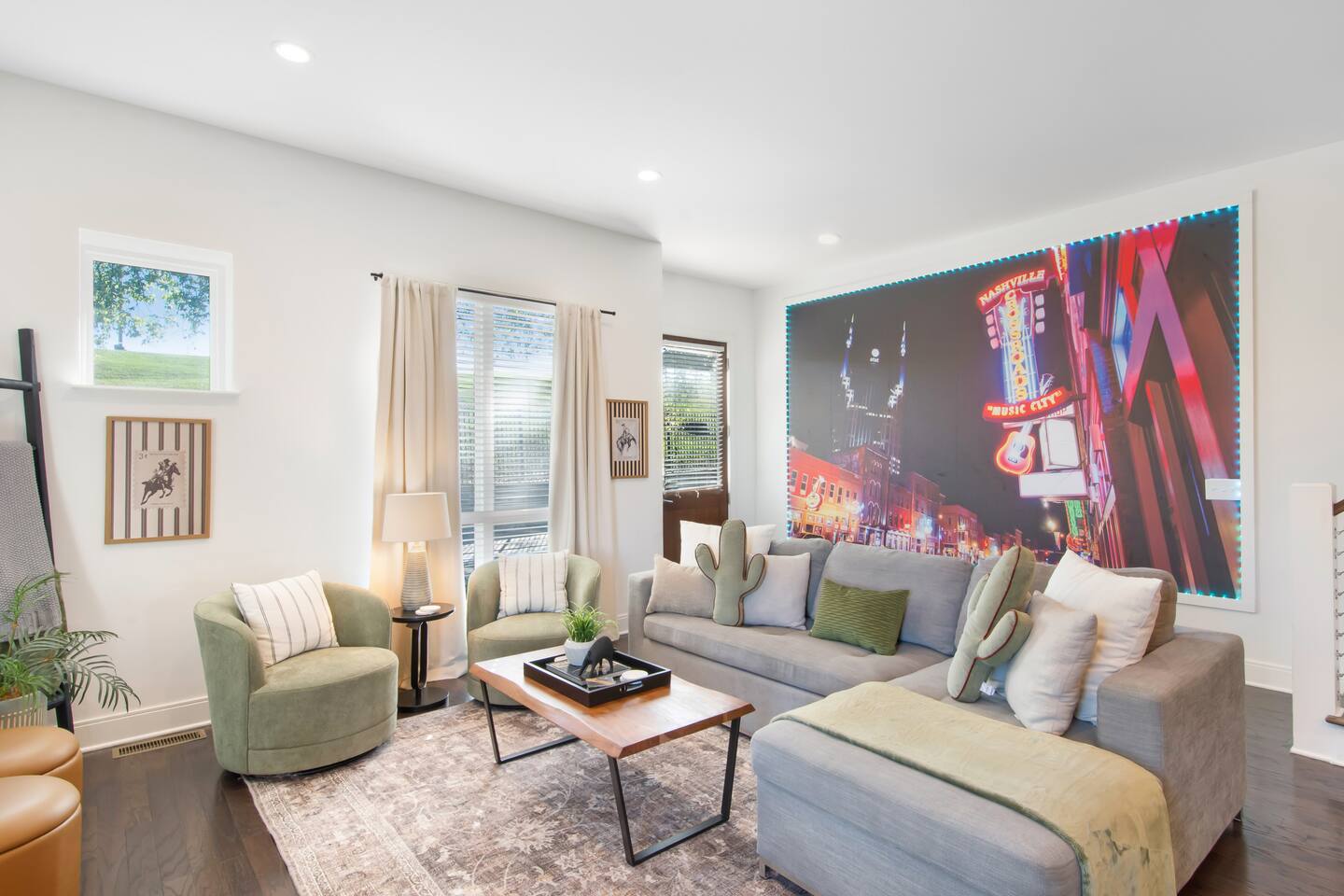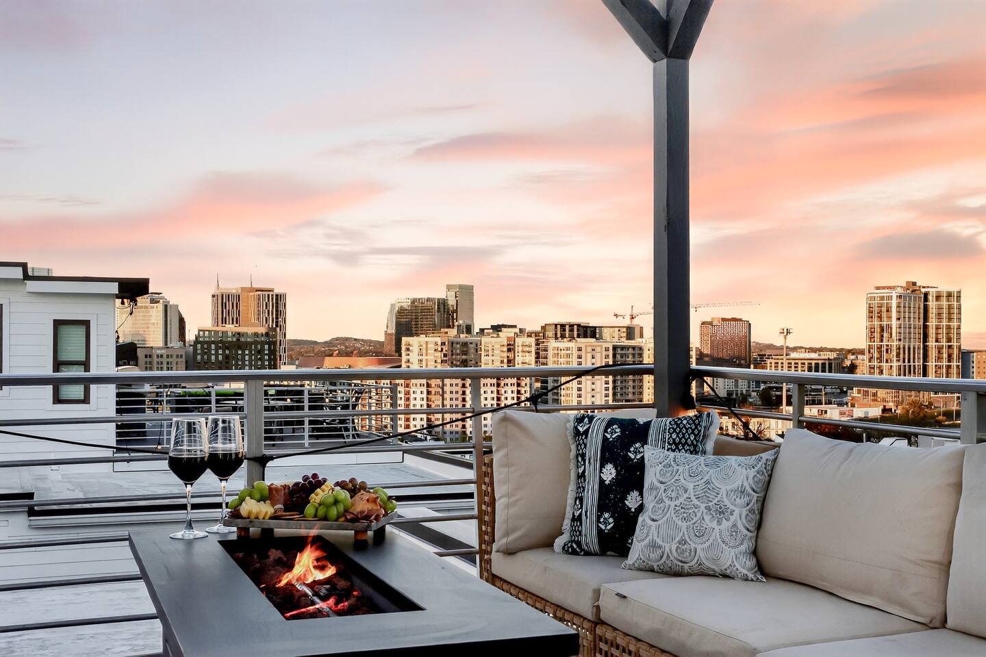 Your Nashville getaway starts here. Just 5 minutes to Broadway and walkable to the Gulch, The Wren offers 14 beds, a private rooftop, and a modern, spacious layout stocked with everything you would need — perfect for large groups, families, friends, and bachelor/bachelorette groups looking for comfort, connection, and killer skyline views.