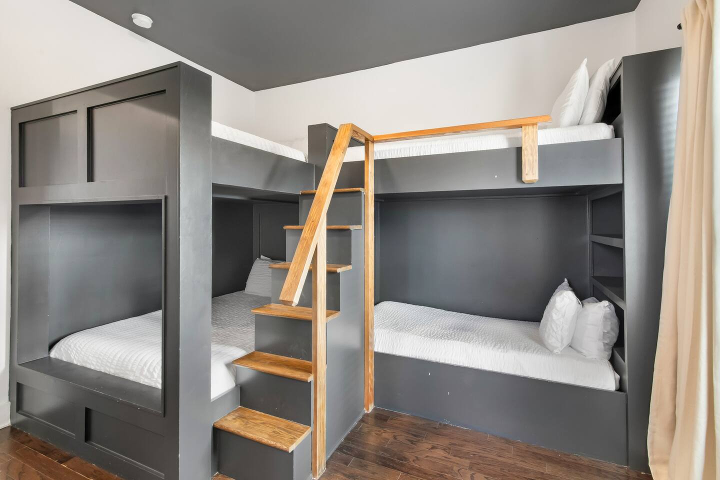 With 14 different beds, The Wren can host the largest of groups—very comfortably. We designed the space to be inviting, modern, and spacious, all while feeling like you’re staying in Nashville. Enjoy meals in the spacious kitchen or take them to the rooftop lounge, where you can eat with skyline views soak in the sunset. From a full-stocked coffee bar, to makeup towels in the bathrooms, we’ve taken care of everything for you. If you have questions about how many our home can sleep or anything else, please send us an inquiry. ✨ What You’ll Love 🌇 Rooftop lounge w/ fire pit, west facing views & golden hour sunsets. 👟 Located in the Gulch, walkable to coffee shops, restaurants, bars, and more. 🛏️ Sleeps 12 comfortably across 4 bedrooms + 14 beds total ☕ Fully Stocked Coffee Bar for your perfect morning coffee 🍽️ Chef’s kitchen w/ all your kitchen basics from a toaster to blenders. 🎶 Just minutes from Broadway, Downtown, 12 South, Music Row, and more! 🚗 Garage parking + free street parking ✅ Early check-in & late check-out when available 🛏️ Sleeping Arrangements (4BR, 4BA, 14 Beds) Level 1 (with the garage): Bedroom 1 - Queen bed + full trundle (1Q, 1F) Built in Full Bunks by the stairs (FQ) Level 2 (with the living room + kitchen): Bedroom 2 - 2x Queen/Twin Beds (QF, 2T) Level 3 (with laundry): Bedroom 3 - King Suite with a twin trundle (1K, 1T) Bedroom 4 - 2 Queens + Twin Daybed (2Q, 2T) Each bedroom has an ensuite bathroom. 4 full bathrooms so no one’s waiting in line! Mornings at The Wren start at the coffee bar. Whether you're an early riser or recovering from a night on Broadway, you’ll find everything you need to fuel your day. Offering both options for either Drip or Keurig brewers, with creamers, syrups, and all the fixings. It's your own personal cafe. Fully loaded kitchen includes sleek stainless steel appliances, toaster, blender, all the cookware / utensils, and more. 🏙️ Location Highlights: 🛻 Walkable to the Gulch / Edgehill 🛍️ 5 min to 12 South 🍴 5 min to Broadway’s honky-tonks & nightlife 🏈 9 min to Titans Stadium & TopGolf ✈️ 14 min to BNA Airport 🎶 20 min to Grand Ole Opry You’ll be in the perfect spot to explore — without the chaos of being in the middle of it all. ☕ Walkable Neighborhood Gems Sunda (asian fusion) Osa Coffee Roasters (coffee shop) The Well Coffeehouse (coffee shop) LalaLand Coffee (coffee shop) Barcelona Wine Bar (restaurant) L.A. Jackson (rooftoop bar) Golden Sound (speakeasy vibe bar) Biscuit Love Gulch (breakfast) & SO MUCH MORE!! 🚗 Parking 2 spots in the attached garage & free street parking directly in front Well-lit & easy access. WE DO NOT RENT TO LOCALS; IF YOU ARE A LOCAL PLEASE INQUIRE BEFORE ATTEMPTING TO BOOK.