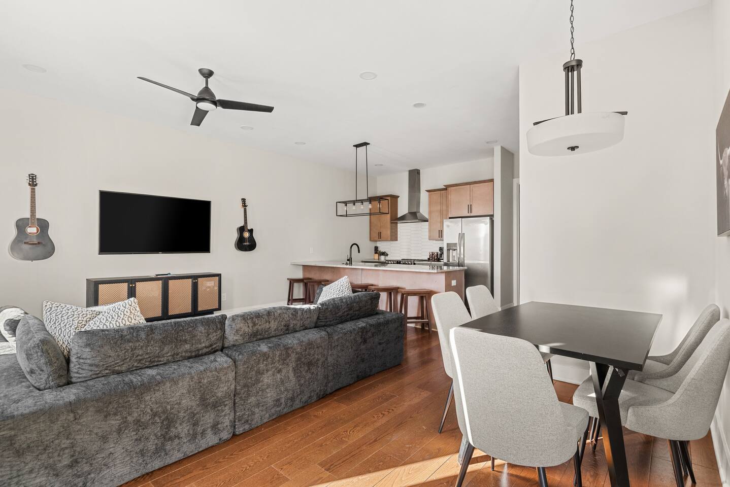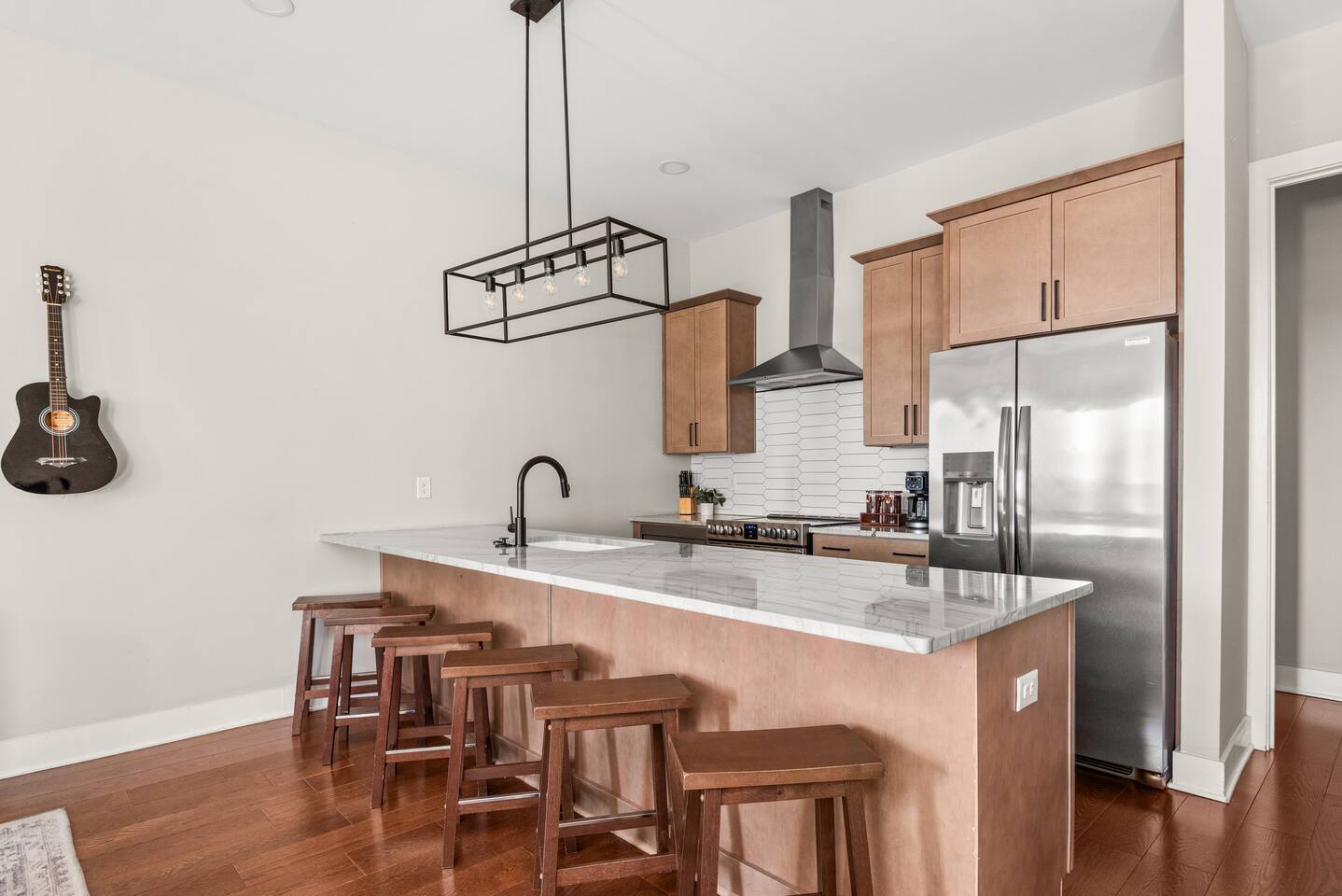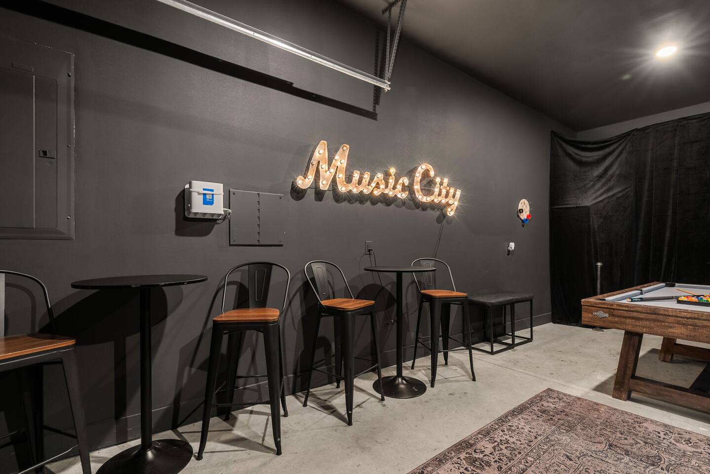 Start your mornings at the fully stocked coffee bar, soak in the rooftop hot tub under the stars with amazing city views, or challenge your crew to a game of pool in the garage game room. With 15 comfy beds across four stylish stories, multiple living areas, and skyline views from the rooftop lounge, The Mercer blends comfort, style, and convenience — just a quick ride from the heart of downtown. What You’ll Love at The Mercer: -Rooftop w/ hot tub that has east facing views & golden hour sunrises -The home accommodates large groups, we have 12 beds spread across 4 rooms! -Coffee bar setup with options for both drip & keurig so you can make coffee your way. -Quick uber to Broadway & all downtown attractions (about 12 minutes). -Free Parking available - home has room for two cars on the parking pad. -Early check-in & late check-out when available Welcome to four levels of comfort, fun, and proximity to downtown. Natural light pours into every room by day and every window has curtains to keep it out at night. Whether you’re dancing downtown or staying in for rooftop cocktails, The Maddox is your perfect escape in Music City. 🛏️ Sleeping Arrangements (15 beds total) Bedroom 1 (2nd Floor - Kitchen & Living Room): 2 Full Beds with 2 Twins over Bedroom 2 (3rd Floor): 1 King Bedroom 3 (3rd Floor): 6 twins (2 sets of 3x bunks) Bedroom 4 (4th floor w/ rooftop): 2 Full Beds with 2 Twins over 4 bathrooms total, with a half bath off the kitchen. ☕ Eat, Sip & Unwind Mornings at The Mercer start at the coffee bar of your dreams. Whether you're an early riser or recovering from a night on Broadway, you’ll find everything you need to fuel your day. Offering both options for either Drip or Keurig brewers, with creamers, sugar, and all the fixings. It's your own personal cafe! Enjoy meals at the bistro tables or take it to the rooftop, where you can eat with skyline views and watch the sunrise. After dinner? Enjoy our private hot tub while star gazing and observing the entire Nashville Skyline, challenge the crew to a game of Billiards in the garage, or unwind with a movie in the living room. This home has something for everyone. 🏙️ Location Highlights: 🛻 12 min to Broadway’s honky-tonks & nightlife 🍴 12 min to Germantown’s restaurants & shops 🏈 13 min to Titans Stadium & TopGolf 🛍️ 15 min to 12 South ✈️ 20 min to BNA Airport 🎶 22 min to Grand Ole Opry You’ll be in the perfect spot to explore — without the chaos of being in the middle of it all. 🚗 Parking 2 private spots on the parking pad in front of the house & additional open parking spots. Well-lit & easy access — no parallel parking nightmares. NO LOCALS ARE ALLOWED TO BOOK!