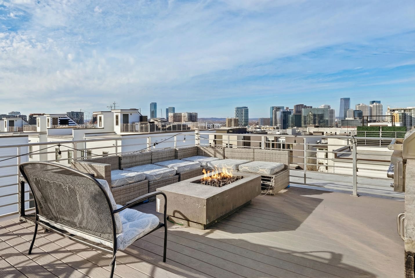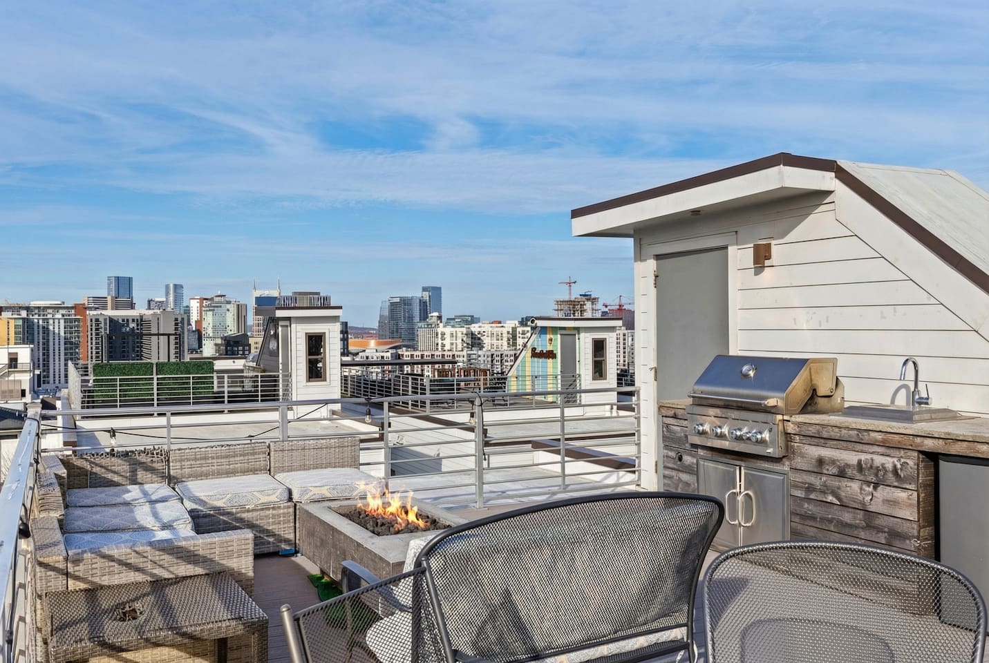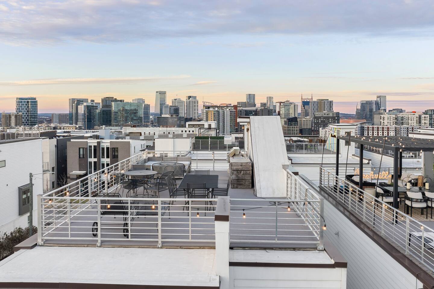 14 beds across an open, well-designed layout means no one’s drawing the short straw. Mornings start in the kitchen with real coffee. Nights end on the private rooftop with a fire pit and insane city views — drinks in hand, fire going, skyline lit up, and the kind of conversations that only happen when no one’s in a rush to leave. You’ll be ready to book again before the trip is even over. Every detail was thought through. The flow of the house. The rooftop setup. The essentials that make group trips smoother without calling attention to themselves. Whether you’re here with friends, family, or a milestone weekend crew, this is the place everyone ends up talking about long after the trip’s over. What You’ll Love 🌇 Rooftop lounge w/ fire pit, great views & golden hour sunsets. 👟 Located in the Gulch, walkable to coffee shops, restaurants, bars, and more. 🛏️ Sleeps 12 comfortably across 4 bedrooms + 14 beds total ☕ Fully Stocked Coffee Bar for your perfect morning coffee 🍽️ Chef’s kitchen w/ all your kitchen basics from a toaster to blenders. 🎶 Just minutes from Broadway, Downtown, 12 South, Music Row, and more! 🚗 Garage parking + free street parking ✅ Early check-in & late check-out when available 🛏️ Sleeping Arrangements (4BR, 4BA, 14 Beds) Level 1 (with the garage): Bedroom 1 - Queen bed + full trundle (1Q, 1F) Built in Full Bunks by the stairs (FQ) Level 2 (with the living room + kitchen): Bedroom 2 - 2x Queen/Twin Beds (QF, 2T) Level 3 (with laundry): Bedroom 3 - King Suite with a twin trundle (1K, 1T) Bedroom 4 - 2 Queens + Twin Daybed (2Q, 2T) Each bedroom has an ensuite bathroom. 4 full bathrooms so no one’s waiting in line! Mornings at The Atlas start at the coffee bar. Whether you're an early riser or recovering from a night on Broadway, you’ll find everything you need to fuel your day. Offering both options for either Drip or Keurig brewers, with creamers, syrups, and all the fixings. It's your own personal cafe. Fully loaded kitchen includes sleek stainless steel appliances, toaster, blender, all the cookware / utensils, and more. 🏙️ Location Highlights: 🛻 Walkable to the Gulch / Edgehill 🛍️ 5 min to 12 South 🍴 5 min to Broadway’s honky-tonks & nightlife 🏈 9 min to Titans Stadium & TopGolf ✈️ 14 min to BNA Airport 🎶 20 min to Grand Ole Opry You’ll be in the perfect spot to explore — without the chaos of being in the middle of it all. ☕ Walkable Neighborhood Gems Sunda (asian fusion) Osa Coffee Roasters (coffee shop) The Well Coffeehouse (coffee shop) LalaLand Coffee (coffee shop) Barcelona Wine Bar (restaurant) L.A. Jackson (rooftoop bar) Golden Sound (speakeasy vibe bar) Biscuit Love Gulch (breakfast) & SO MUCH MORE!! 🚗 Parking 2 spots in the attached garage & free street parking directly in front Well-lit & easy access. WE DO NOT RENT TO LOCALS; IF YOU ARE A LOCAL PLEASE INQUIRE BEFORE ATTEMPTING TO BOOK.